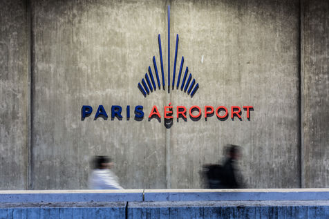 Le nouveau logo de la société "Paris Aéroport" à l'aéroport de Roissy Charles De Gaulle, en 2018.