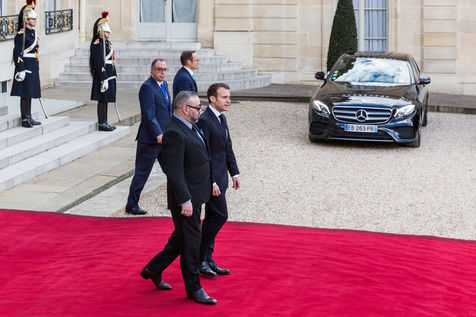 LE PRÉSIDENT FRANÇAIS REÇOIT LE ROI DU MAROC AU PALAIS DE L'ÉLYSÉE