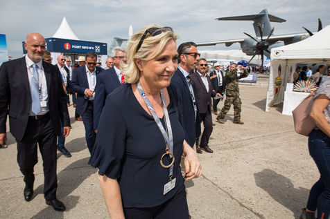 Marine LE PEN, députée et présidente du Rassemblement National au 53e Salon du Bourget (SIAE, Salon International de l'Aéronautique et de l'Espace) au Bourget (Seine-Saint-Denis) près de Paris, France, le 18 Juin 2019.