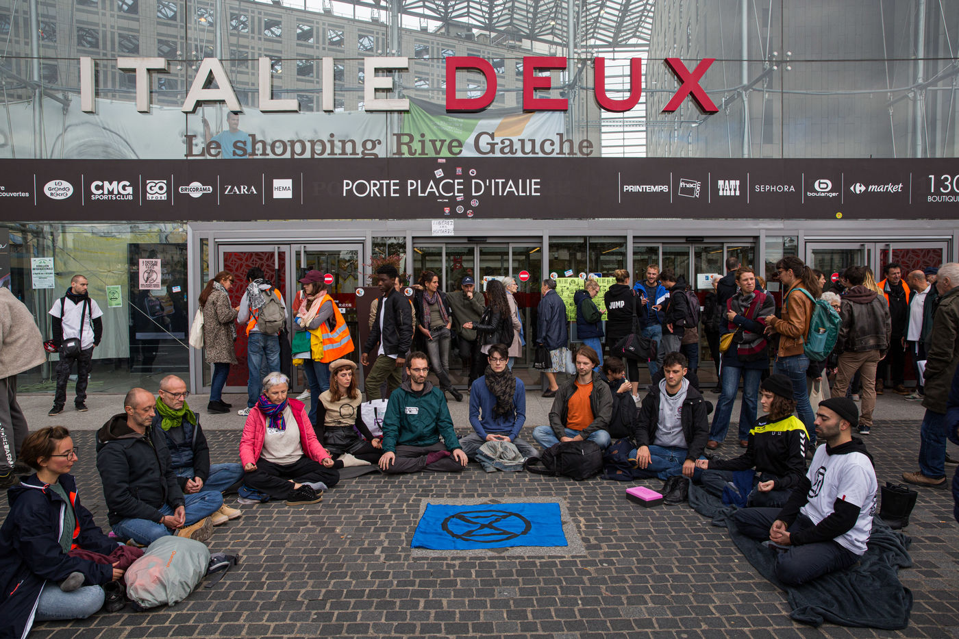 LE MOUVEMENT "EXTINCTION REBELLION" OCCUPE LE CENTRE COMMERCIAL "ITALIE DEUX"
