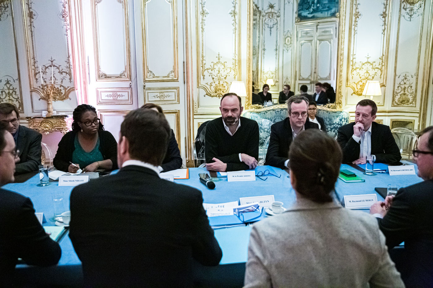 Une réunion de certains ministres du Gouvernement avec le Premier ministre français pour faire le point de situation sur le Coronavirus 2019 n-Cov s'est tenue a l'Hotel de Matignon, à Paris, en France, le Dimanche 2 Février 2020.