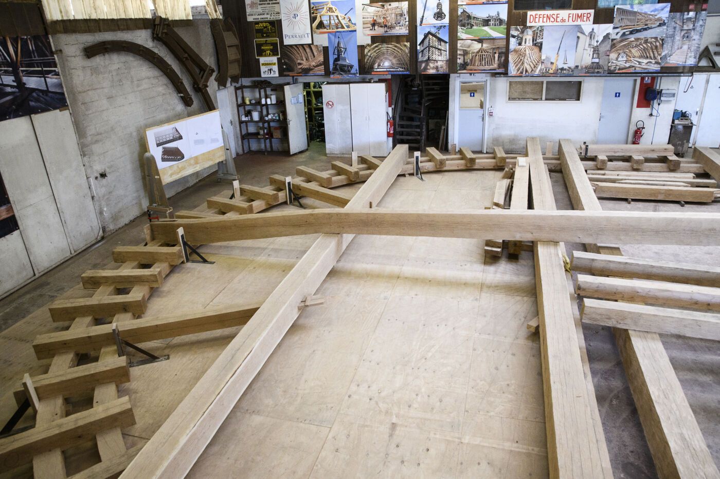 At the Ateliers Perrault in Saint-Laurent-de-la-Plaine in Maine-et-Loire, knackers have manufactured the new framework of Notre Dame de Paris. Work lasting more than a year between the squaring and the assembly.