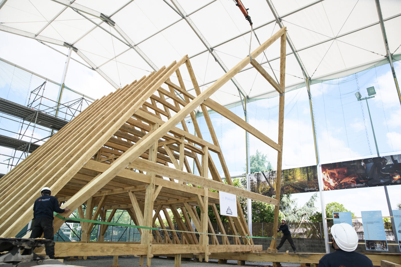 Aux Ateliers Perrault à Saint-Laurent-de-la-Plaine dans le Maine-et-Loire, des équarrisseurs ont fabriqué la nouvelle charpente de Notre Dame de Paris. Travail de plus d'un an entre l'équarrissage et le montage.