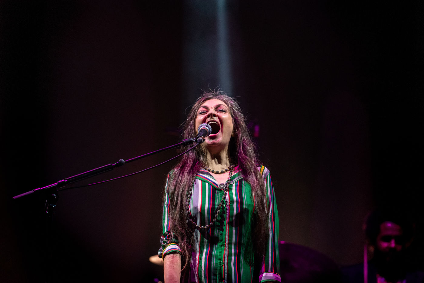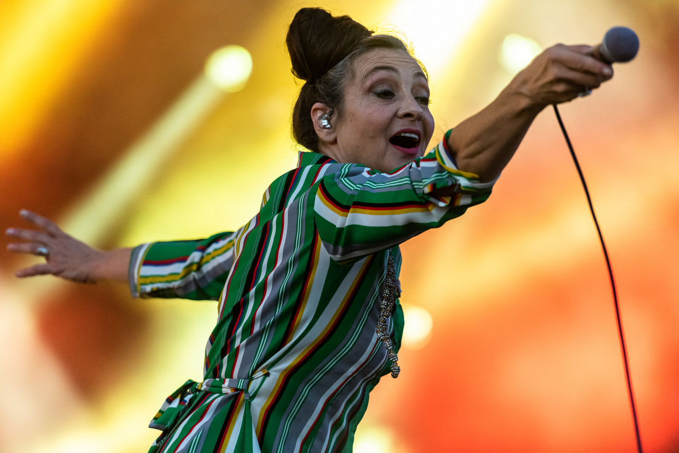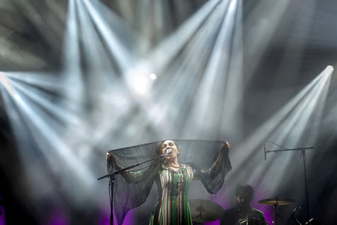 Catherine Ringer en concert a la fete de l humanite qui s'est tenue comme chaque année a la Courneuve. La chanteuse pop du duo Rita Mitsouko a notamment interprete son nouvel album "Chroniques et Fantaisie". Fete de l humanite, Paris, 14 septembre 2018.