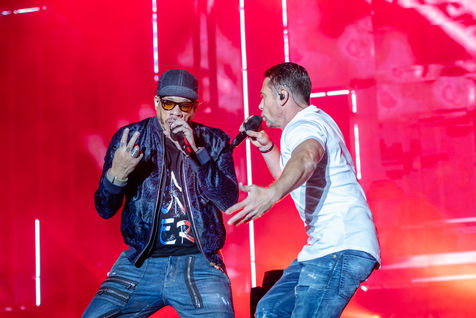 Supreme NTM en concert. Kool Shen (Bruno Lopes) and Joey Starr (Didier Morville) ont joue a la fete de l humanite qui s'est tenue comme chaque année a la Courneuve. Fete de l humanite, Paris, 14 septembre 2018.