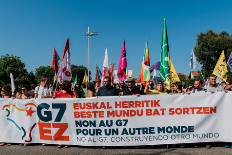 Demonstration against the G7 summit. According to the organizers, more than 15,000 people participated in the march of the counter-summit. Hendaye - Irun, August 24, 2019.