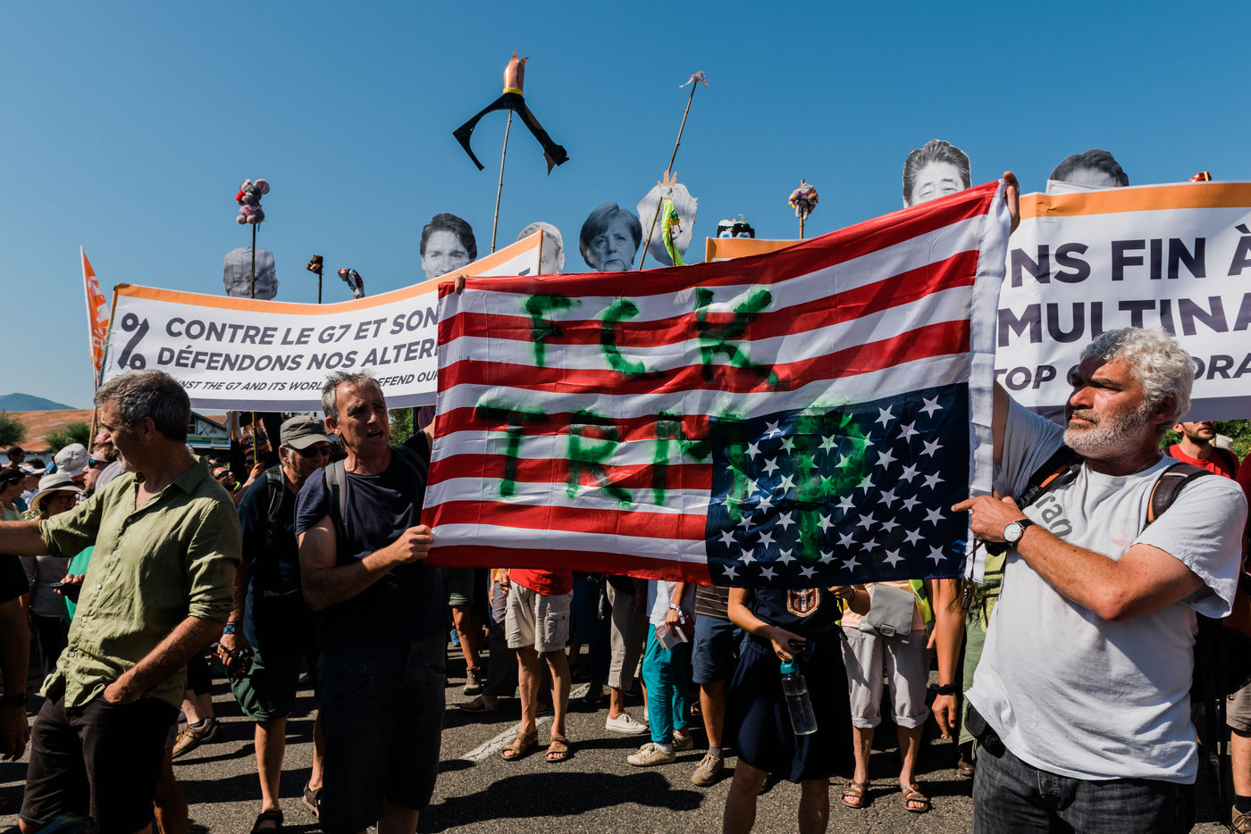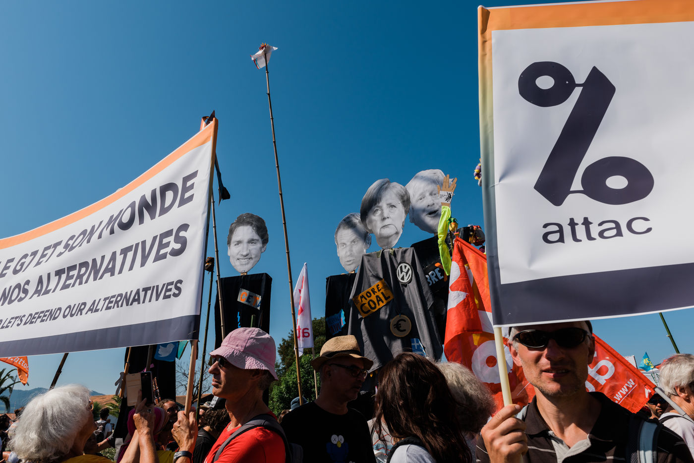 Manifestation contre le sommet du G7. Selon les organisateurs, plus de 15000 personnes ont participe a la marche du contre sommet. Hendaye - Irun , 24 aout 2019.