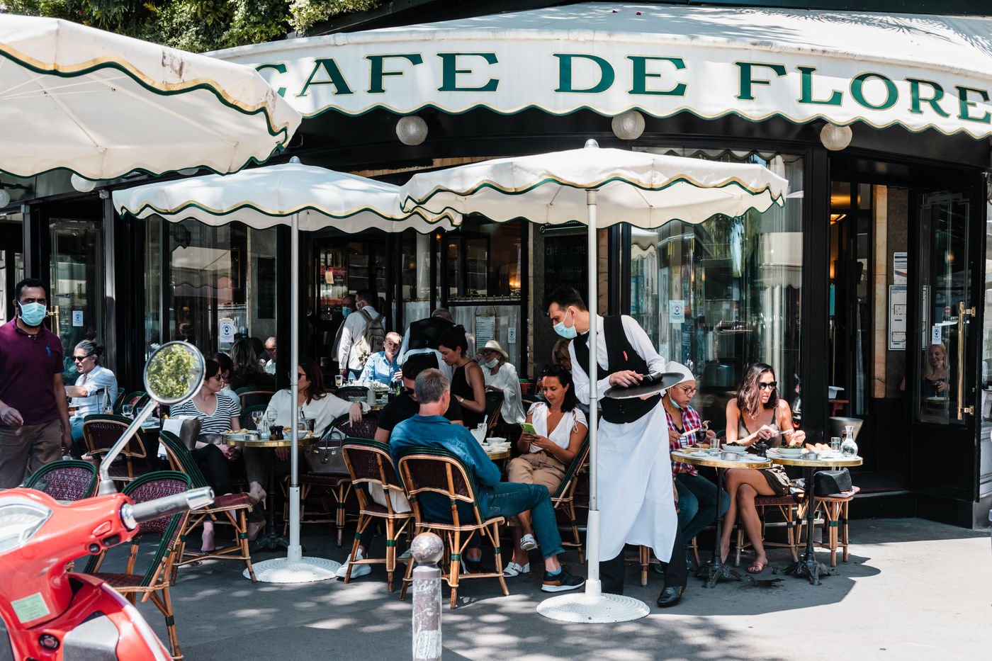 1st opening day of cafes, brasseries and restaurants. Only the terraces are open to customers. Paris, 2 June 2020.