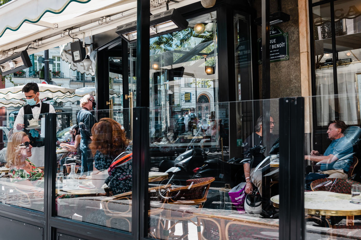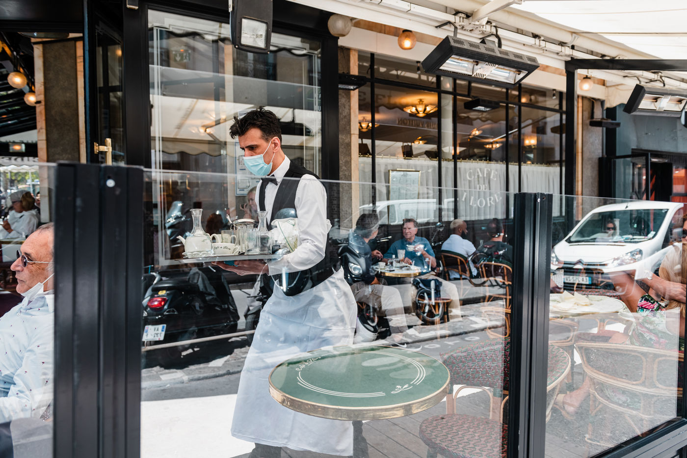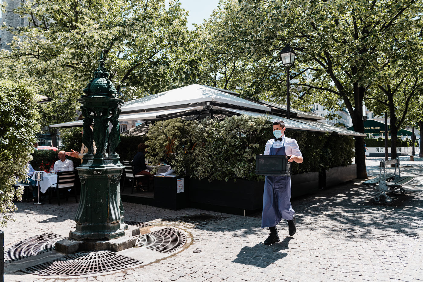 1er jour d'ouverture des cafés, brasseries et restaurants. Seules les terrasses sont ouvertes aux clients. Paris, 2 juin 2020.