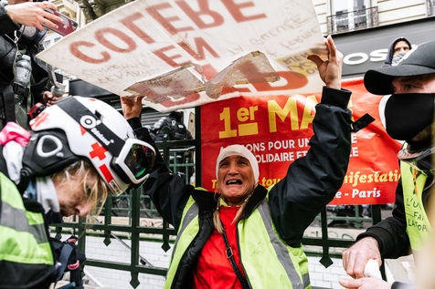 France, Paris, 2021-05-01.Several thousand people gathered for the traditional mobilization for the International Labor Day. From the beginning of the demonstration, police forces and demonstrators clashed, stopping the march on the boulevard Voltaire.