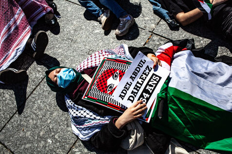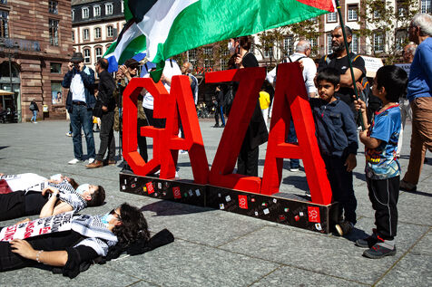 Près de 300 personnes ont participé à l'action die-in pour la Palestine à Strasbourg, tandis que le nombre de mort a atteint 34000 à Gaza, avec les estimations réelles étant encore plus importantes.