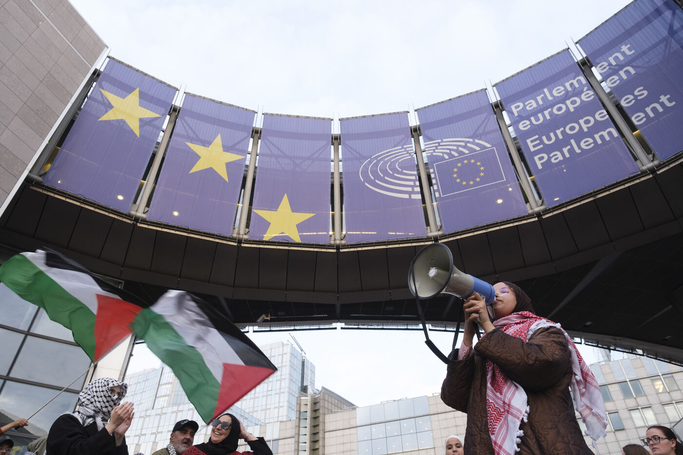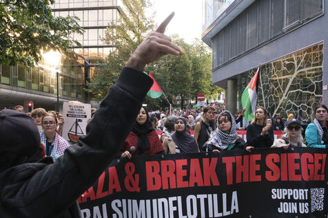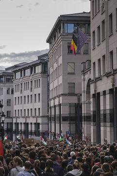 Protest in Brussels against Israel's interception of the Global Sumud Flotilla off the coast of the Gaza Strip, carrying activists and humanitarian aid for the Palestinian people.