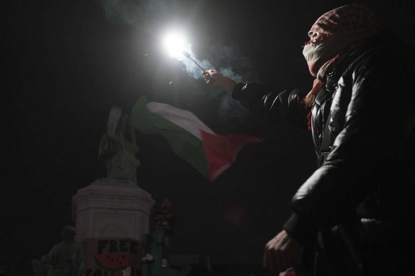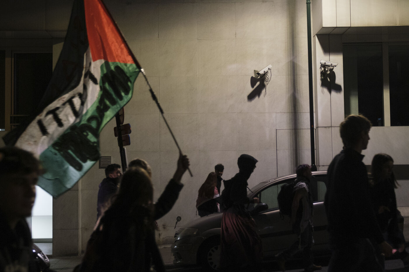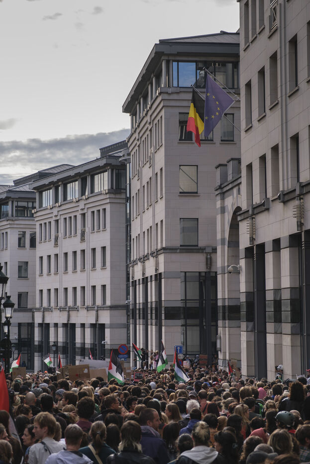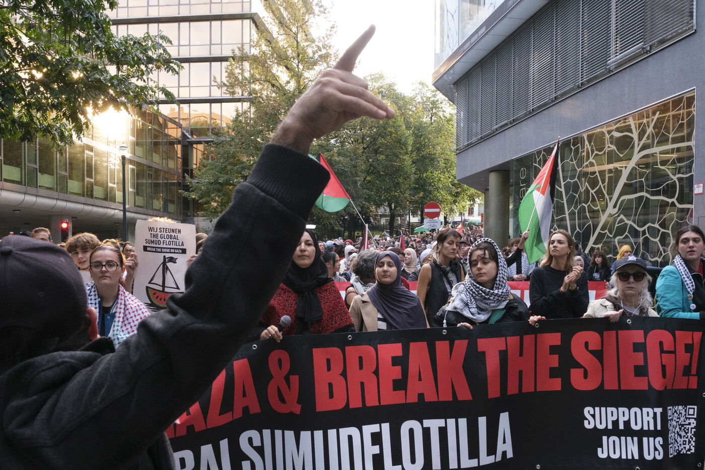 Manifestation à Bruxelles contre l'interception par Israël de la Global Sumud Flotilla au large de la bande de Gaza, avec à son bord activistes et aides humanitaires destinées à la population palestinienne.