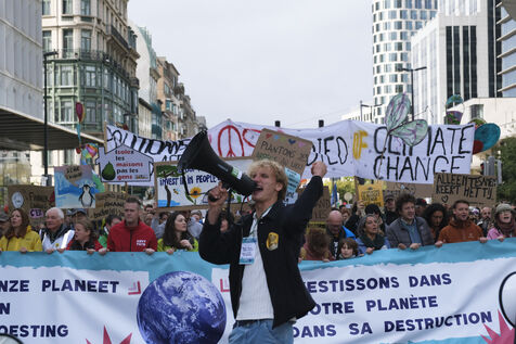 Des milliers de personnes marchent pour le climat à Bruxelles ce 5 octobre 2025 en contestation des mesures gouvernementales prises contre le changement climatique et pour la conservation de l'environnement