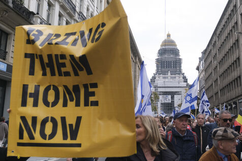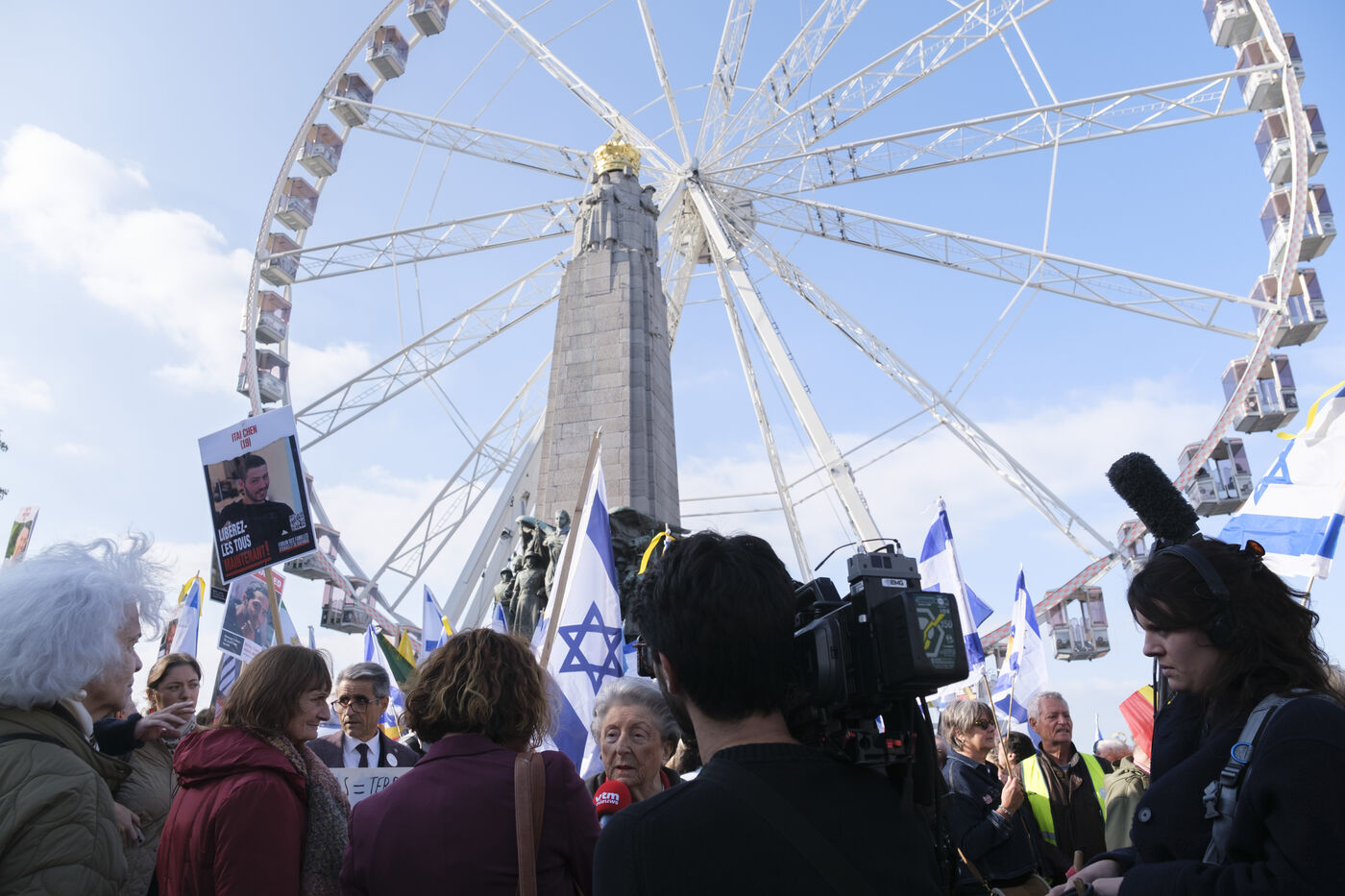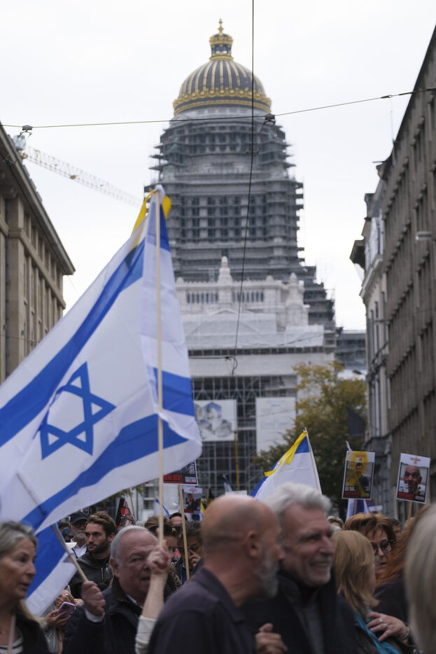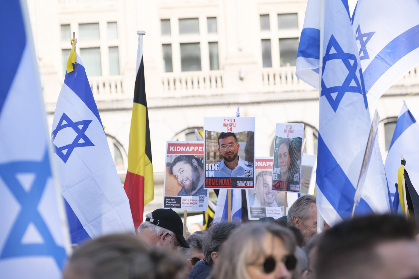 Marche à Bruxelles organisée par l'Alliance Belge pour la Paix au Moyen-Orient afin de commémorer le 07.10.23, soutenir le peuple israélien, exiger la libération de tous les otages, et lutter contre l'antisémitisme.