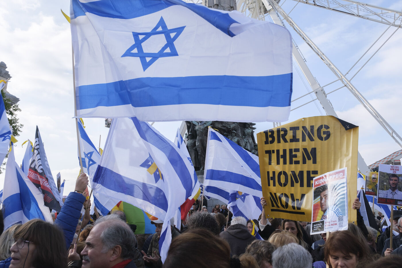 March in Brussels organised by the Belgian Alliance for Peace in the Middle East to commemorate 07.10.23, support the people of Israel, demand the release of all hostages, and stand against antisemitism.