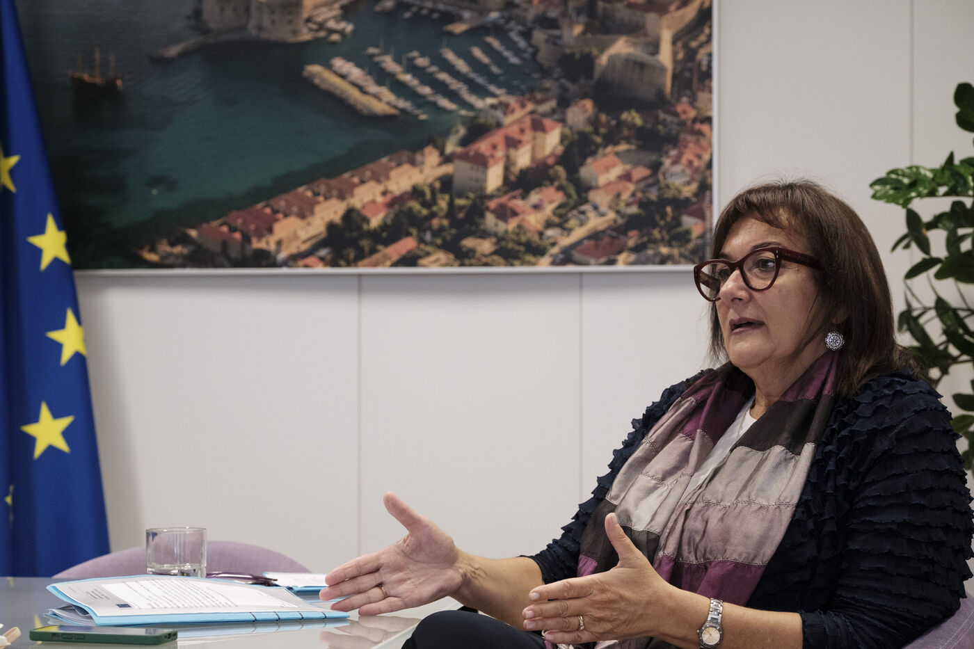 Interview de la commissaire de l'Union Européenne pour la Méditerranée Dubravka Šuica à la Commission Européenne. Bruxelles, Belgique. 15 Octobre 2025.