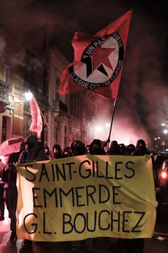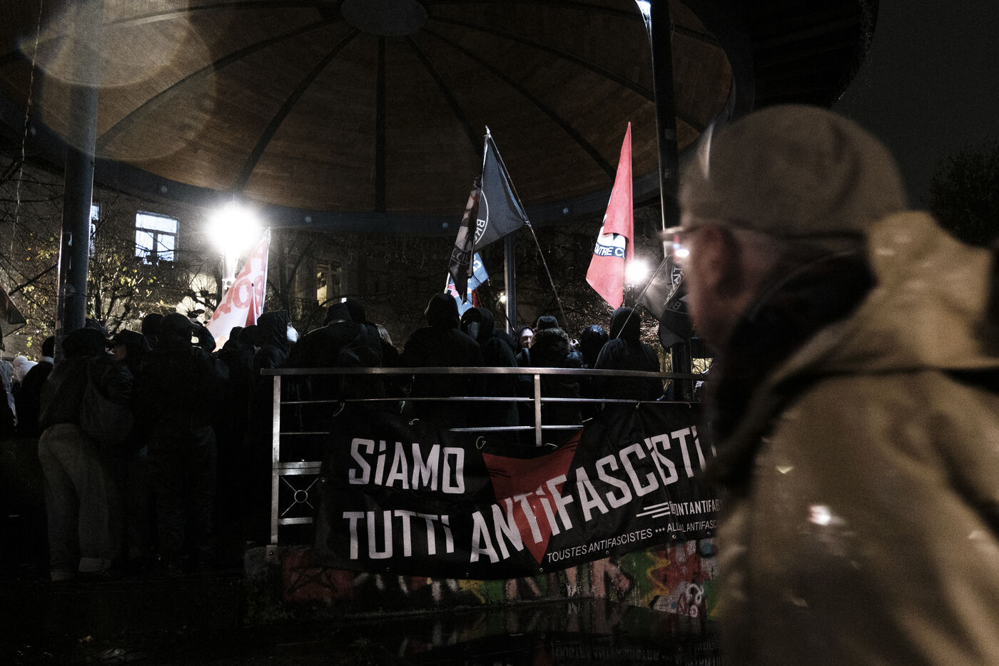 Protest against a conference held by the Belgian right-wing party Mouvement Réformateur in the Saint-Gilles neighbourhood following a call to action by the anti-fascist movement. Brussels, Belgium. November 19, 2025.