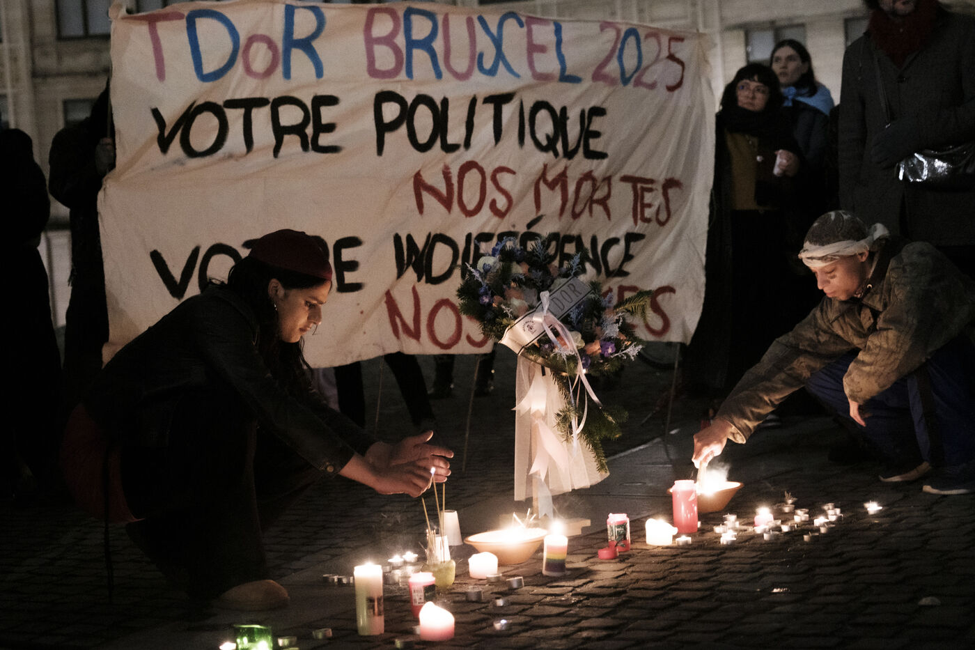 Vigil for the international Transgender Day of Remembrance commemorating transgender victims of violence and murder. Brussels, Belgium. November 20, 2025.