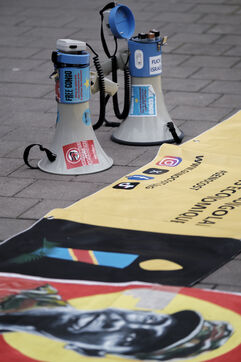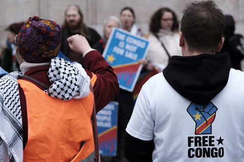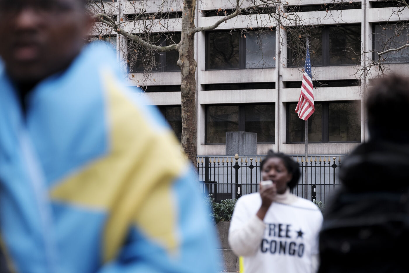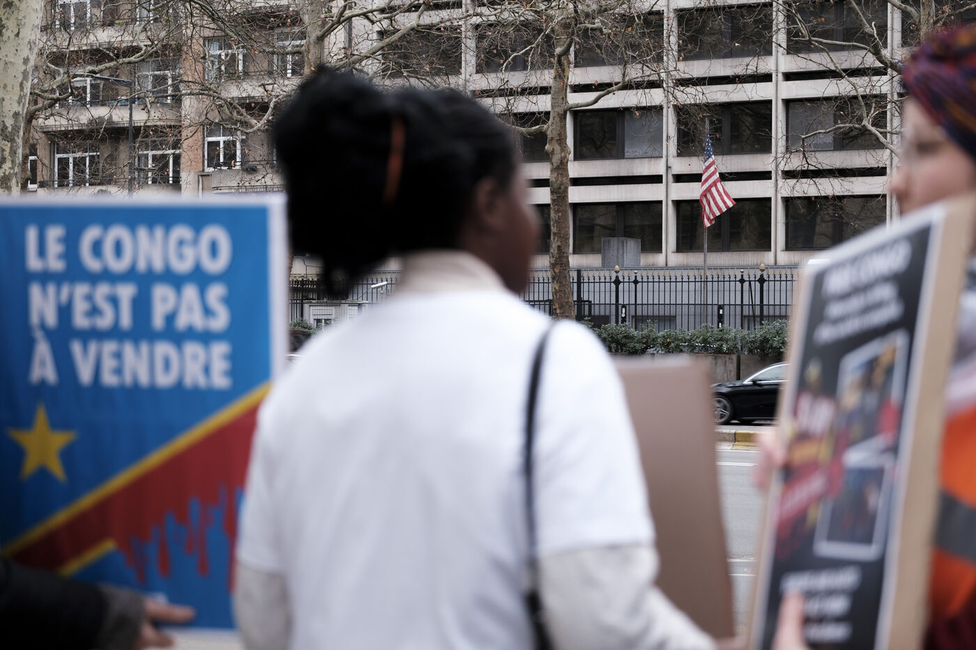 Demonstration in protest of the peace plan brokered by the United States between the Democratic Republic of the Congo and Rwanda in front of the US embassy. Brussels, Belgium. December 20, 2025.