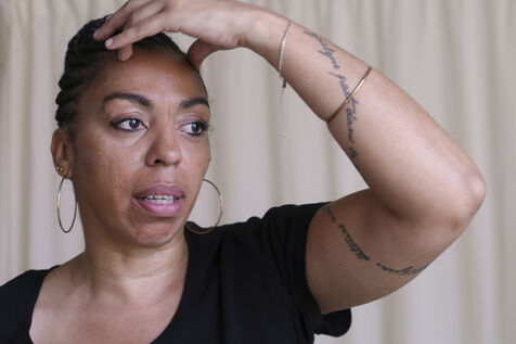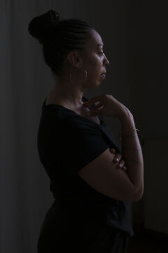 Portrait de la poétesse nationale belge Lisette Lombé en train de répéter pour sa performance au festival Ecrire et Dire à Rennes Bretagne France le 19 Mars 2026. Elle y présente son spectacle de slam poésie Ce que le ventre dit en duo avec le rappeur Marc Nammour.