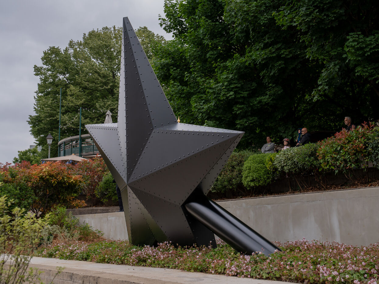 Inauguration of the “Memorial to the Forgotten” by artist Jean-Luc Verna at the Port de l'Arsenal gardens in Bastille, with the Socialist mayor of Paris, Anne Hidalgo, and the deputy mayor of Paris in charge of combating discrimination, Jean-Luc Romero, in tribute to homosexual victims of deportation on the occasion of the International Day Against LGBTQIA+phobias.