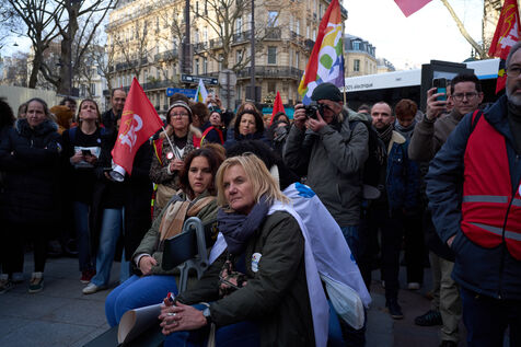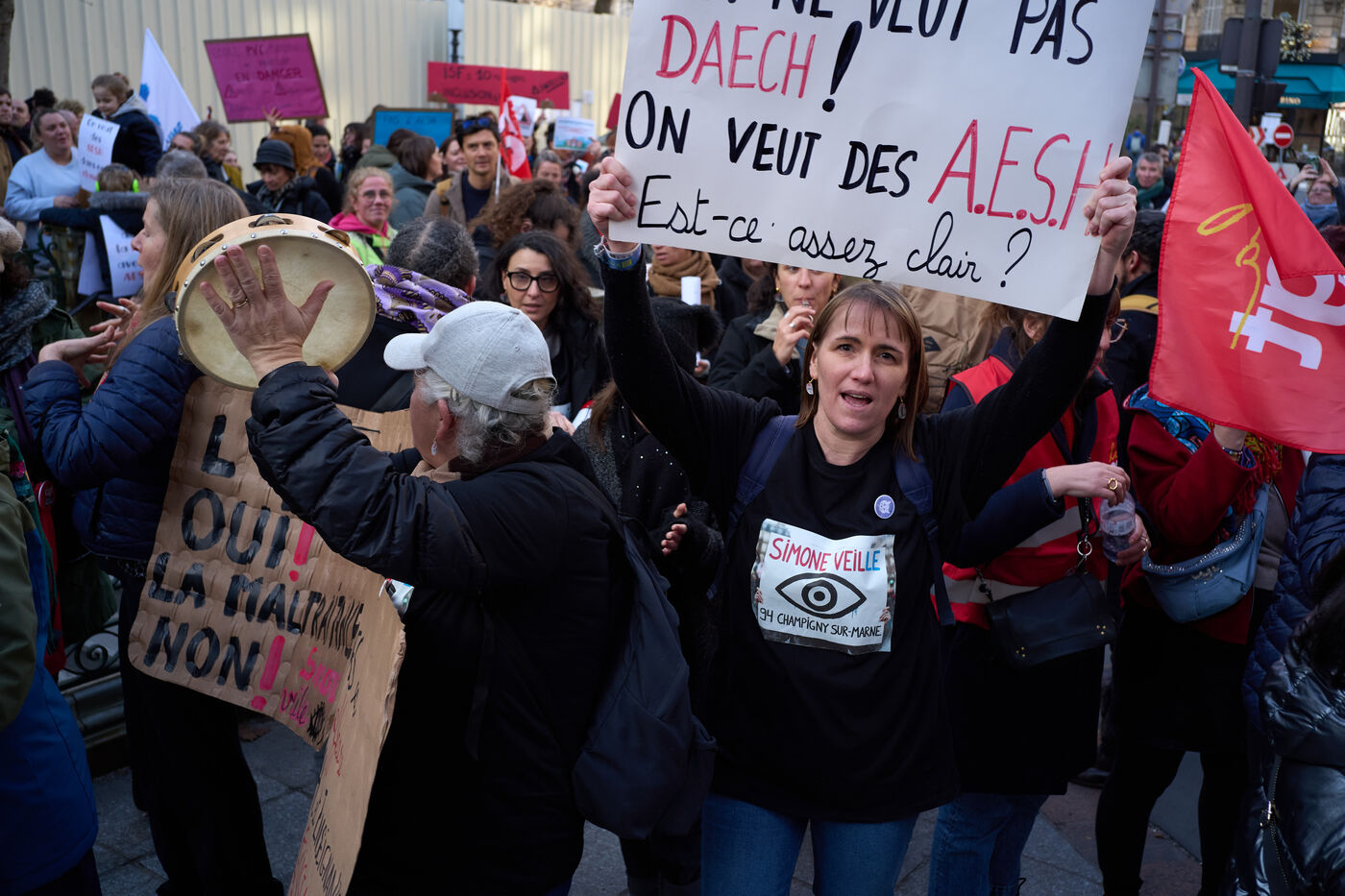 At the call of the inter-union coalition, a large rally is being held to demand higher wages and better resources outside the Ministry of Education in Paris on January 15, 2026