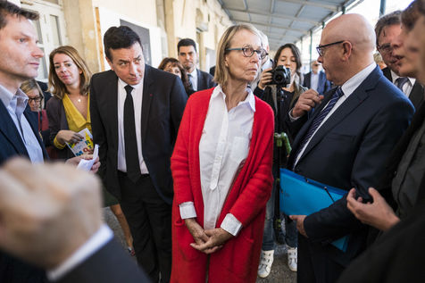 Déplacement de Françoise Nyssen, ministre de la Culture accompagnée du Maire de Nice Christian Estrosi, dans l?ancien collège Mistral à Arles. Découverte de trois ateliers pratiques d?initiation à la lecture de l?image.