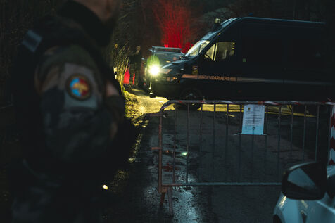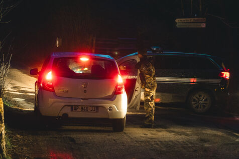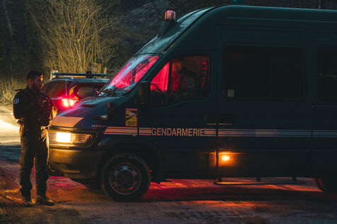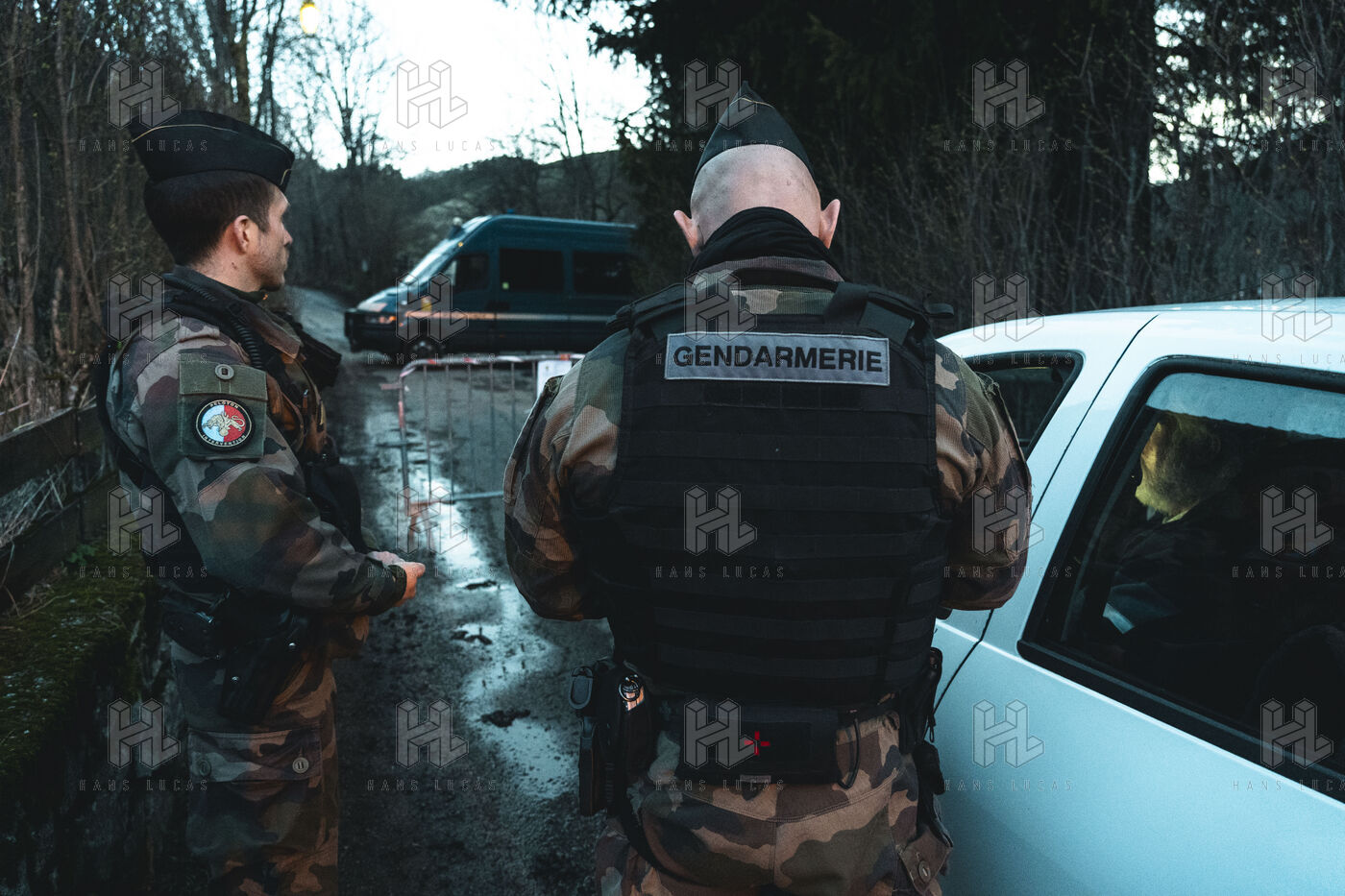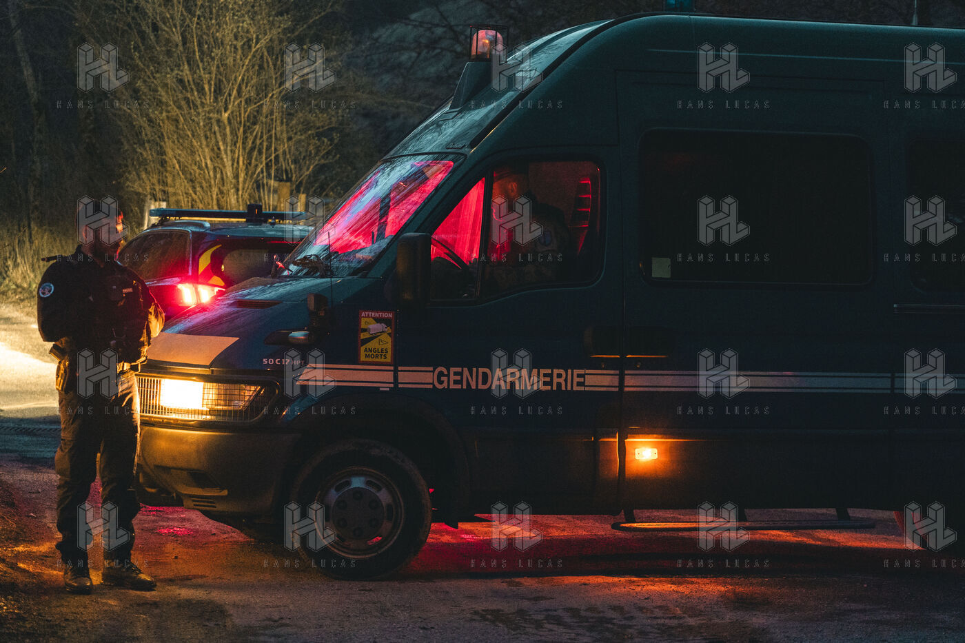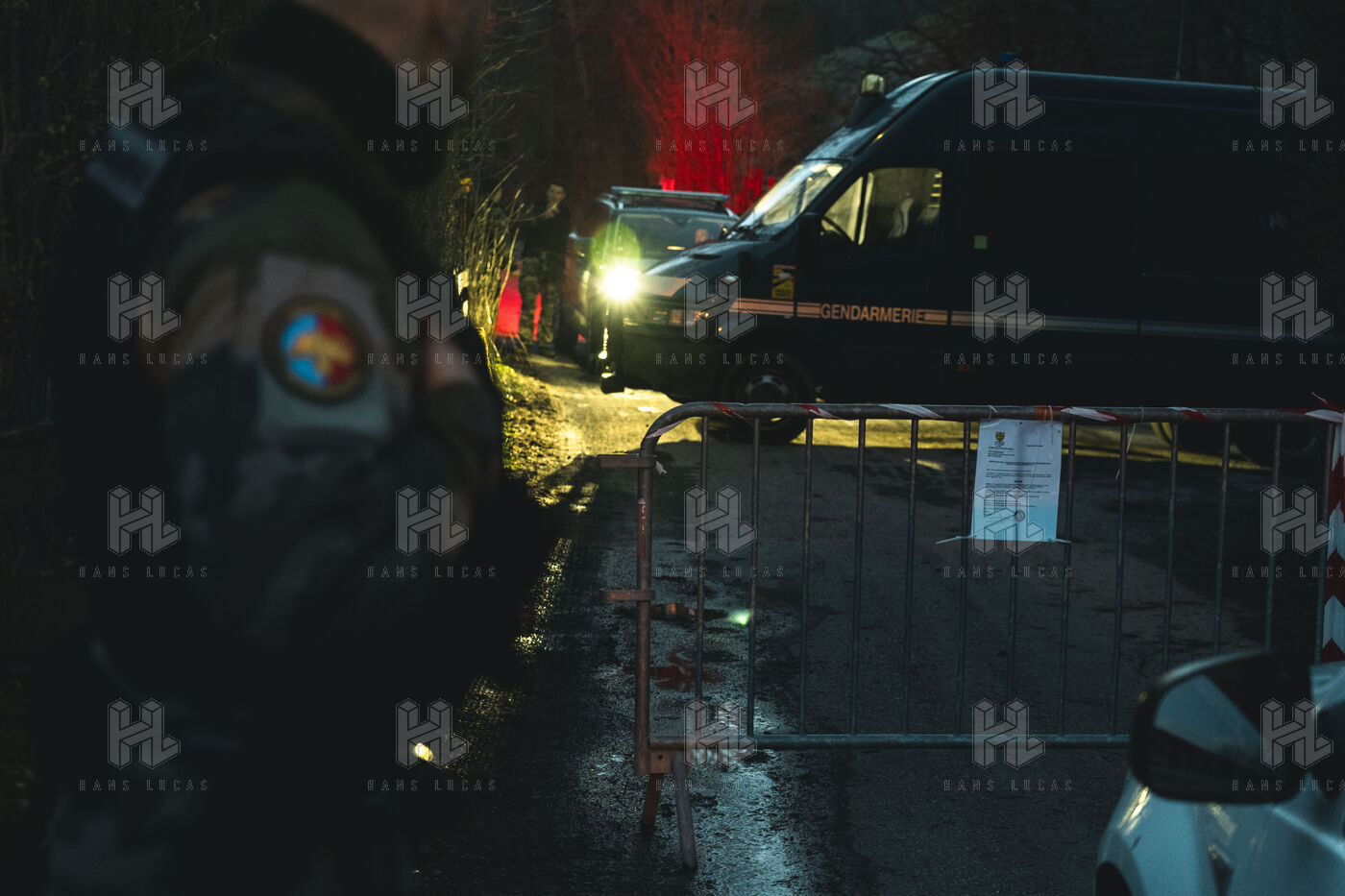 France, Le Vernet, April 01, 2024, Night atmosphere, in the village where little Emile disappeared, the gendarmerie authorities are alerted to the poignant discovery of the bones, underlining the scale of the tragedy and the intensity of the investigation to find the missing child. This heavy atmosphere confronts the community with the painful reality of loss.Photograph by Louai BARAKAT / HANS LUCAS.