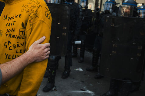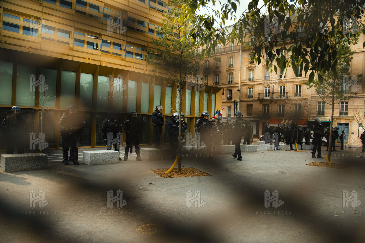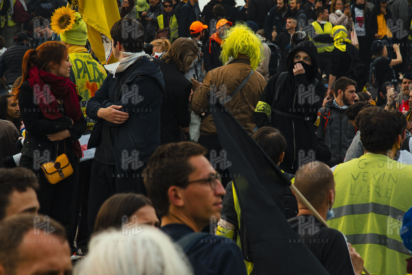 France, Paris, May 01, 2019, Multiple groups get together for a libertarian march ahead of the main demonstrations in Paris earlier today. Last year saw the politically charged march against the governments unpopular pensions reforms become increasingly violent. Photograph by Louai BARAKAT / Hans Lucas.
