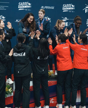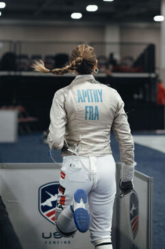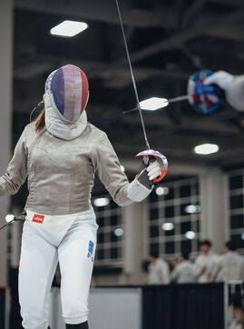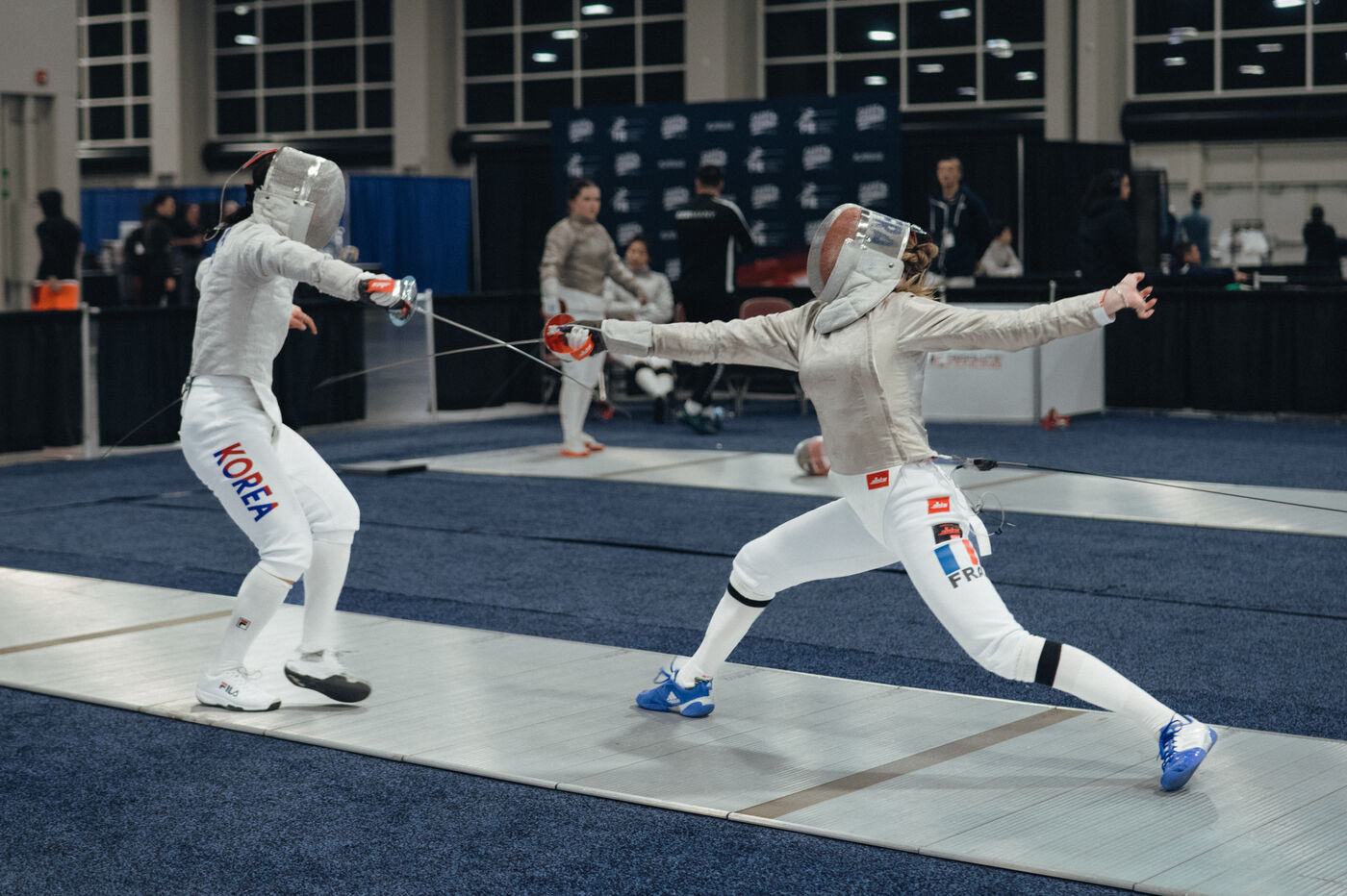 Photos of French fencers at the Fencing World Cup in Salt Lake City, Utah