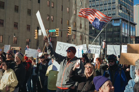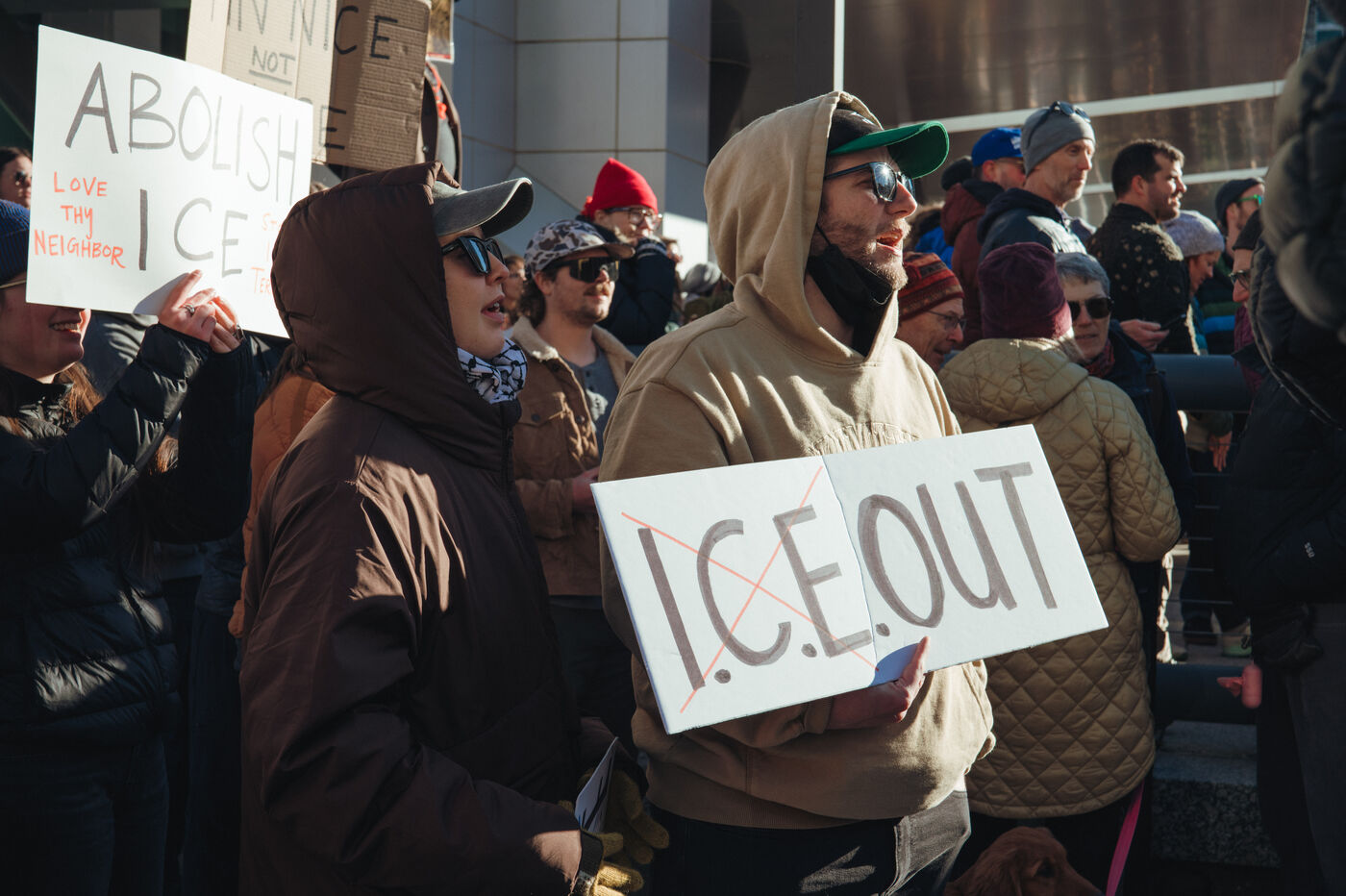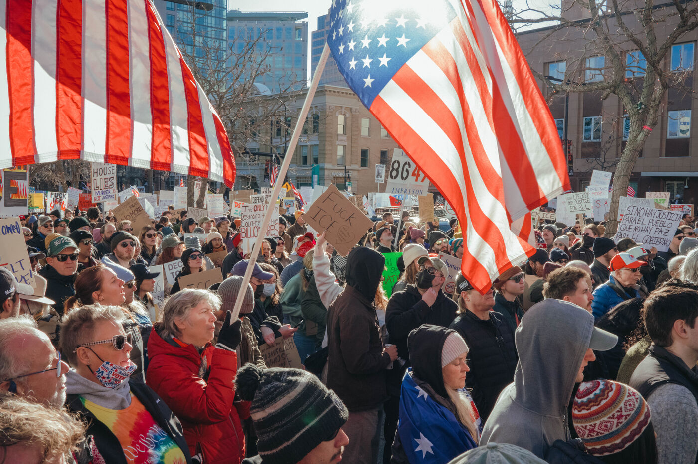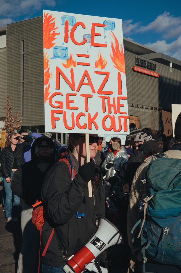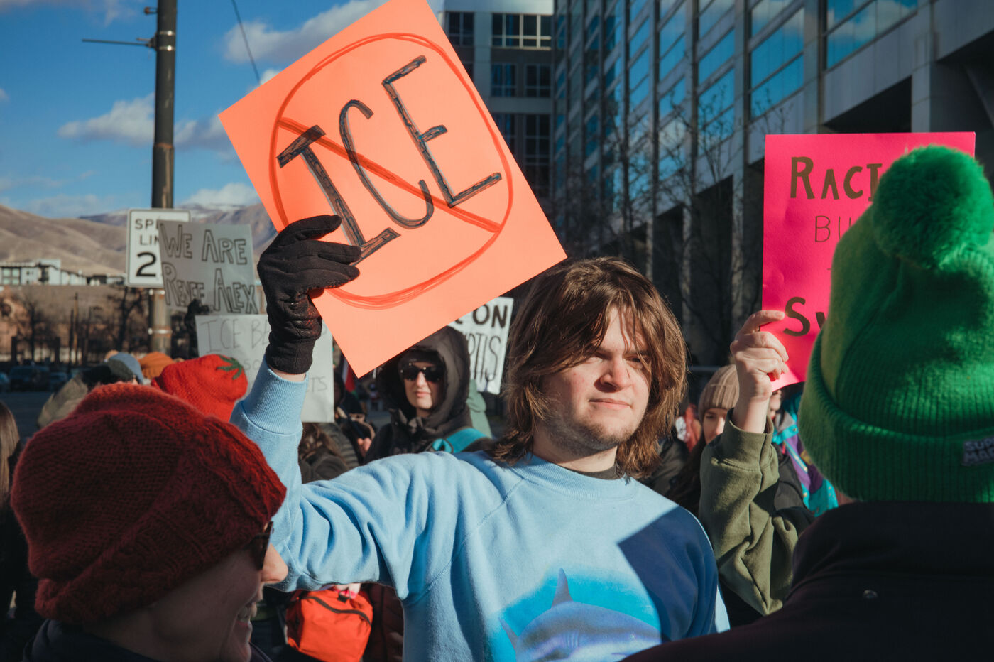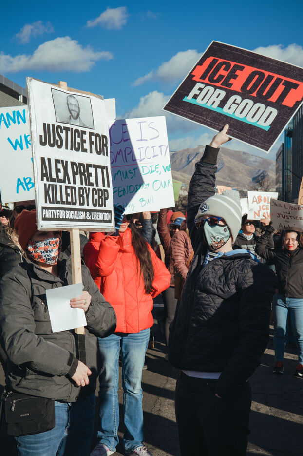 Protest against ICE on Sunday, January 25, 2026, in the streets of Salt Lake City following the death of an American citizen at the hands of federal agents.