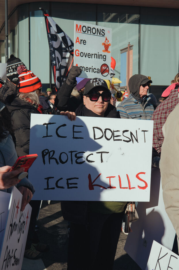 Manifestation contre l'ICE, le dimanche 25 janvier 2026, dans les rues de Salt Lake City après la mort d'un américain par les agents fédéraux.