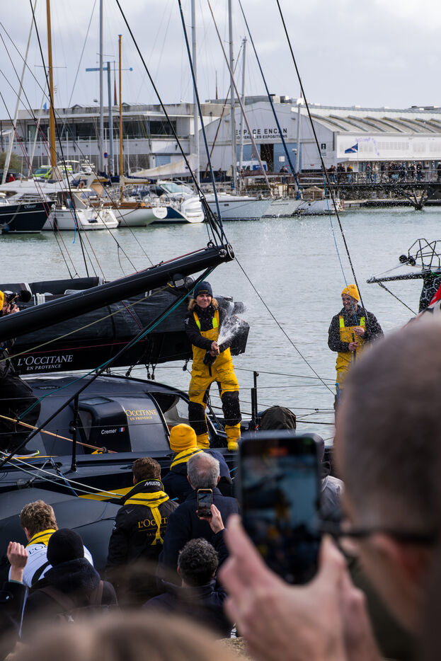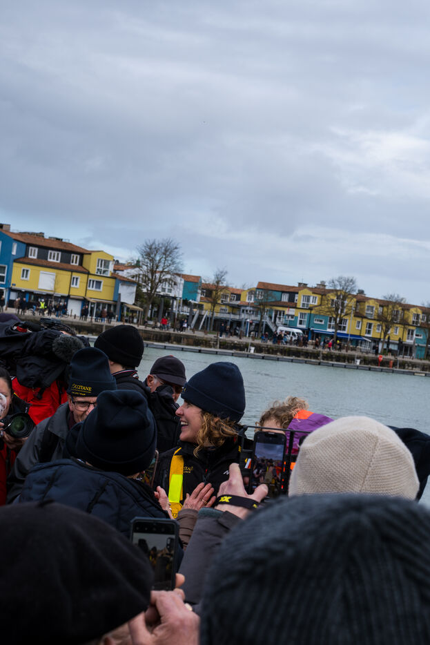 Arriving on Monday, January 27, 2025, Clarisse Cremer finished her round-the-world journey in eleventh place, after 77 days and 15 hours at sea. Once crossing the finish line off the coast of Les Sables-d'Olonne, the skipper was diverted to La Rochelle due to Storm Herminia. The people of La Rochelle came out in large numbers to celebrate the sailor's arrival. In the previous edition of the Vendée Globe in 2020, she became the fastest woman in the history of the race.