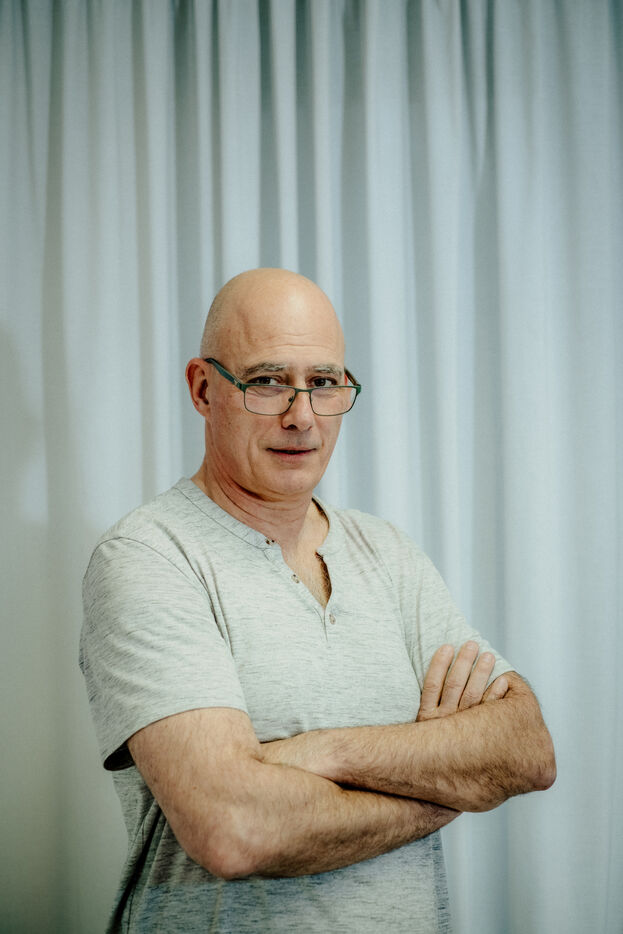 Portrait de l'ethnologue Christophe Darmangeat durant une interview sur sur son dernier livre Casus belli, un essai qui refonde le problème de l’origine de la guerre dans son bureau a l'Université Paris Cite a Paris en France le 28 novembre 2025.