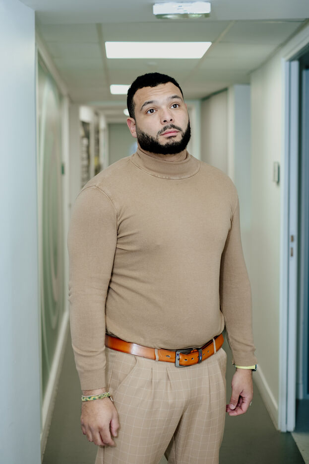 Portrait of Nicolas 27, at the offices of the Associations Addict France association in Paris France on December 3 2025. Nicolas a former online gambling addict, volunteers to work on preventing online gambling addiction in middle and high schools.