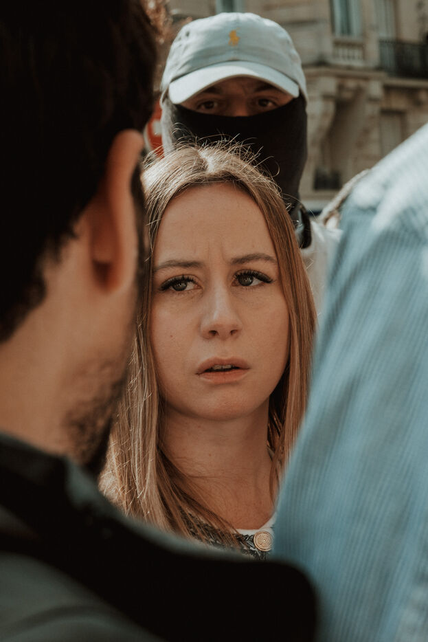 Interdit de rejoindre le cortège de manifestation parisien, le collectif identitaire d'extrême droite Némésis a organisé en marge de cette mobilisation du 8 mars pour la journée des droits des femmes, un rassemblement place Jean Lorrain dans le 16ème arrondissement de Paris le 8 mars 2026.