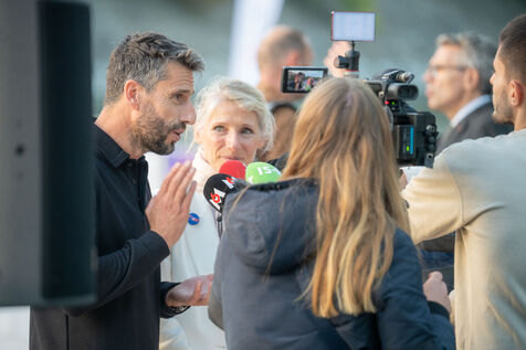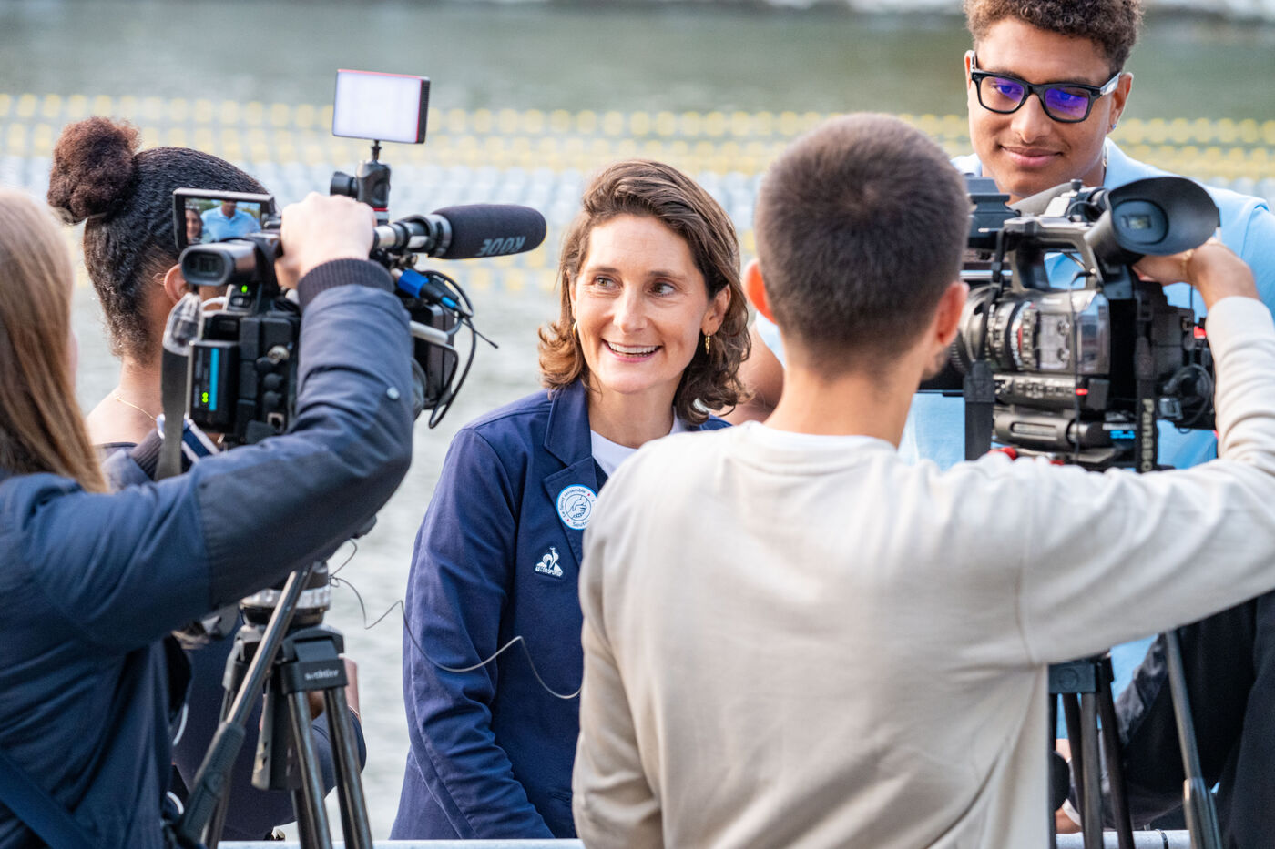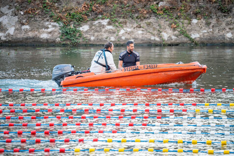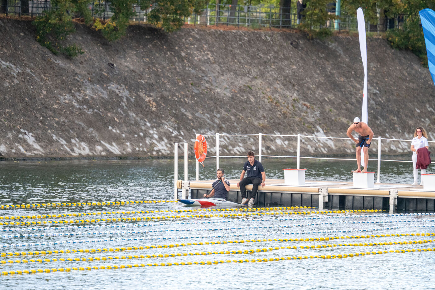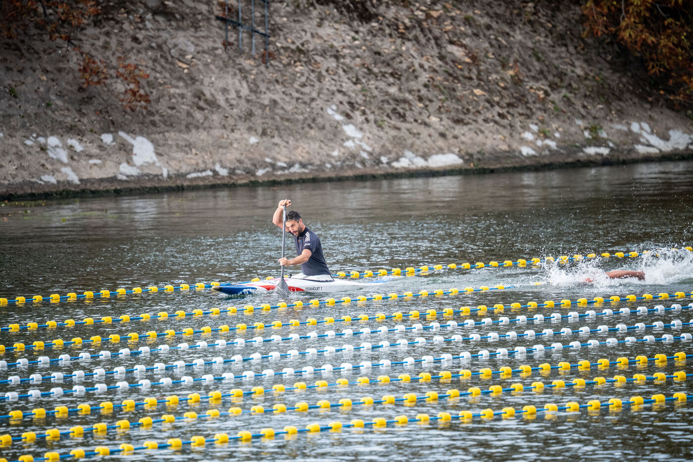 During the Open EDF sur Seine competition, French athlete Tony Estanguet, three-time Olympic canoeing champion, and Maxime Grousset, French world champion in the 100m butterfly, took on a challenge combining their two sporting specialties to lead a sprint race over 100 meters. This event was part of the first edition of the Sports Festival announced by French President Emmanuel Macron during the Paris 2024 Olympic Games, held on the Grenelle basin in the Seine in Paris. The event was held in the presence of Marie Barsacq, Minister of Sports, Youth and Community Life, and Amélie Oudéa-Castéra, President of the French National Olympic and Sports Committee.