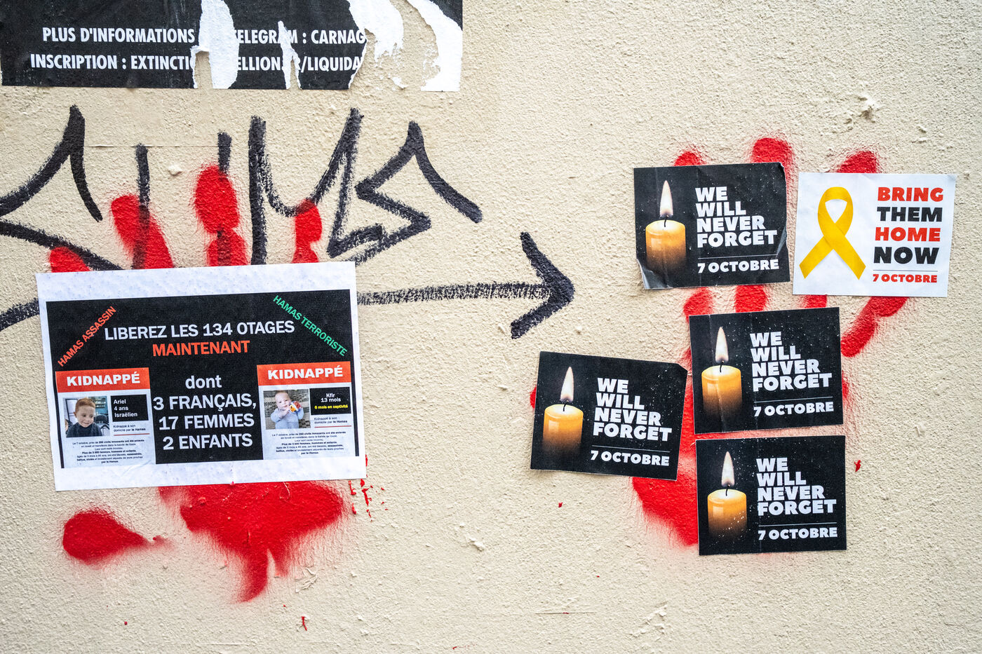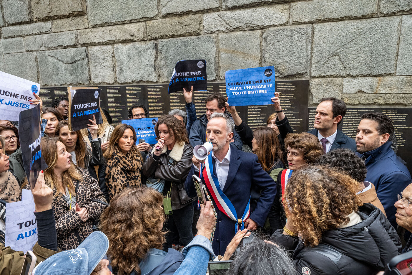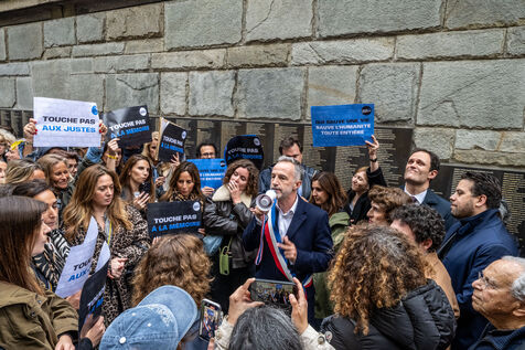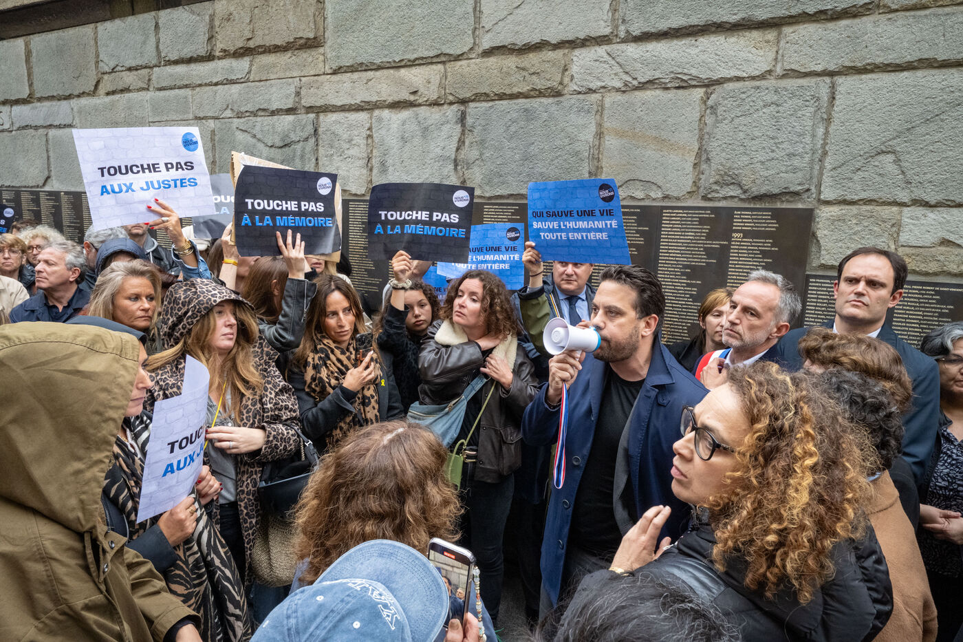 On May 14, 2024, a demonstration was organized in front of the Shoah Memorial in Paris, called by various groups and associations, to protest the desecration of the Wall of the Righteous Among the Nations with red hand graffiti. The desecration of the Wall, which lists the names of those who saved Jews during World War II, occurred amidst tensions related to the conflict in Gaza following the Hamas terrorist attack. Other acts of antisemitic vandalism, denounced by France as a Russian influence operation, had taken place in the preceding months.