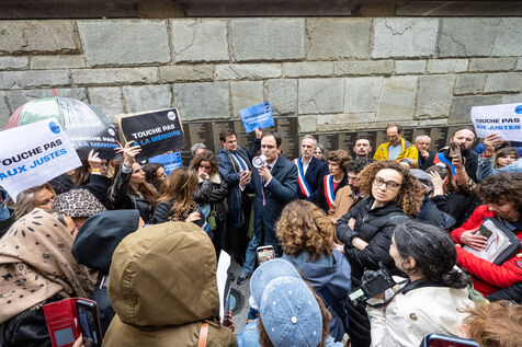 Le 14 mai 2024, une manifestation était organisée devant le Mémorial de la Shoah à Paris à l'appel de collectifs et d'associations pour protester contre la profanation du Mur des Justes avec des tags de mains rouges. La profanation du Mur listant les noms des personnes qui ont sauvé des Juifs pendant la Seconde Guerre mondiale est intervenue dans un contexte de tensions liées au conflit a Gaza suite a l'attentat terroriste du Hamas. D'autres actions de vandalisme antisémite dénoncées par la France comme une opération d'influence russe sont survenues les mois précédents.