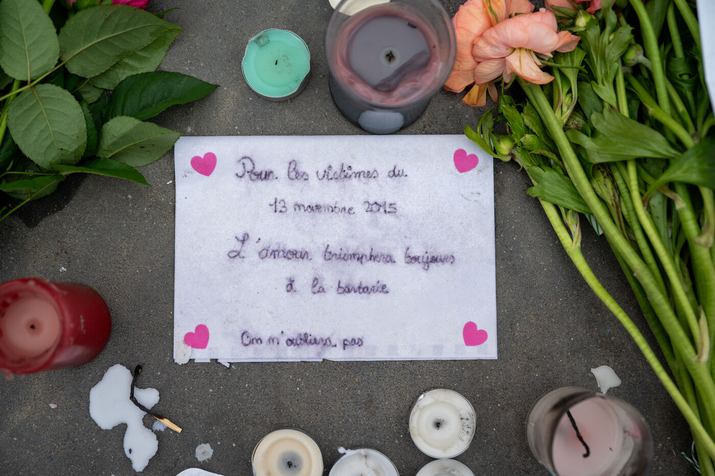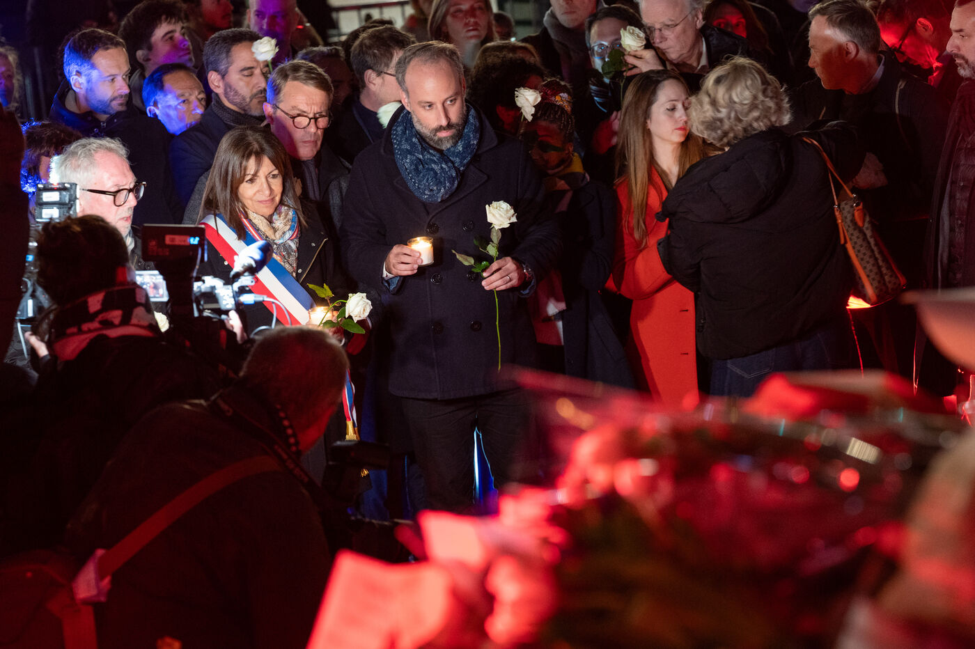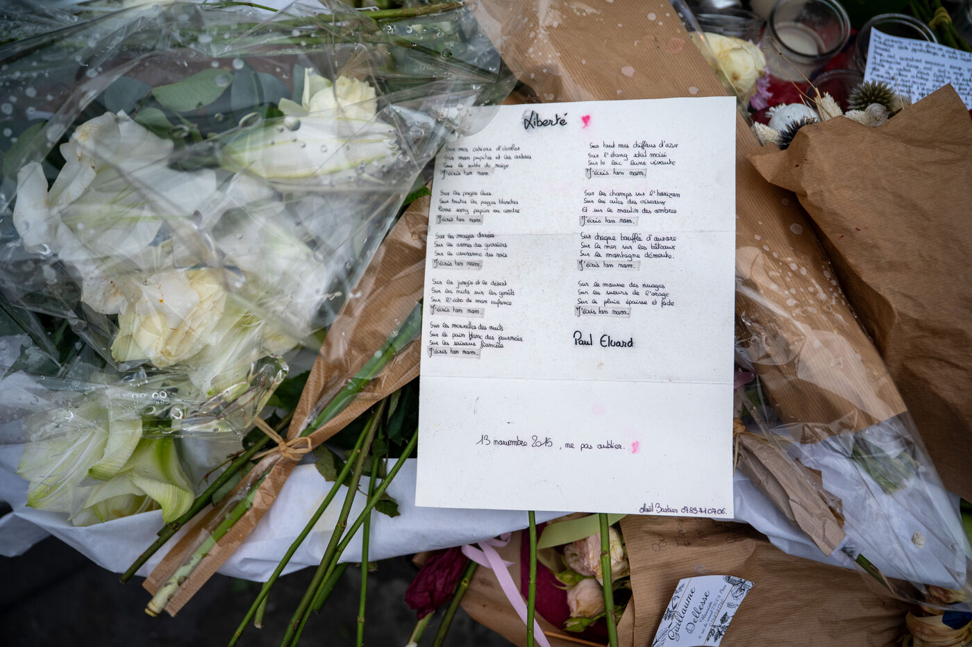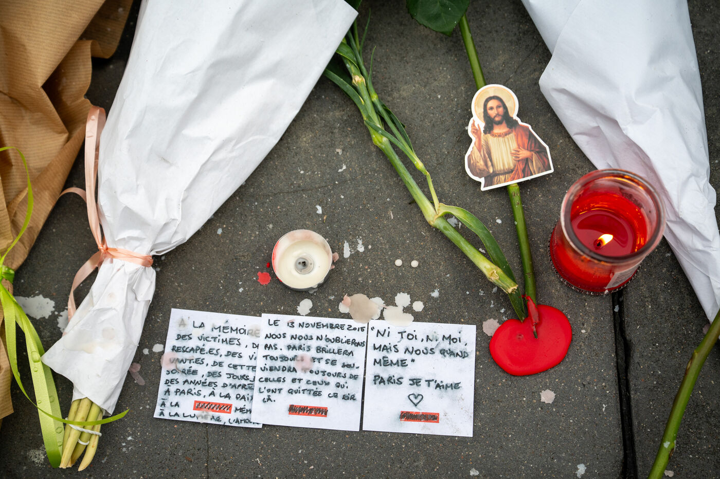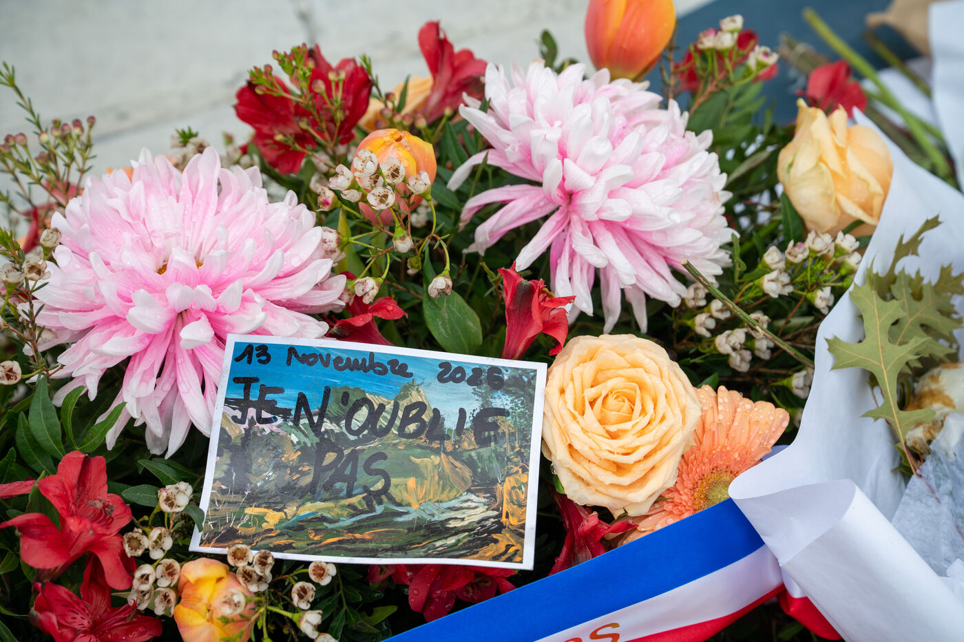 Fleurs et bougies, messages d'amour et d'amitié, commémorations spontanées et manifestations officielles se déroulent 10 ans après les attentats terroristes meurtrier de 2015 dans plusieurs lieux symboliques de la ville de Paris, dont la Place de la République, à proximité de la Mairie de Paris avec l'inauguration d'un monument pour toutes les victimes ou encore sur les différents sites touchés mortellement dans la capitale.