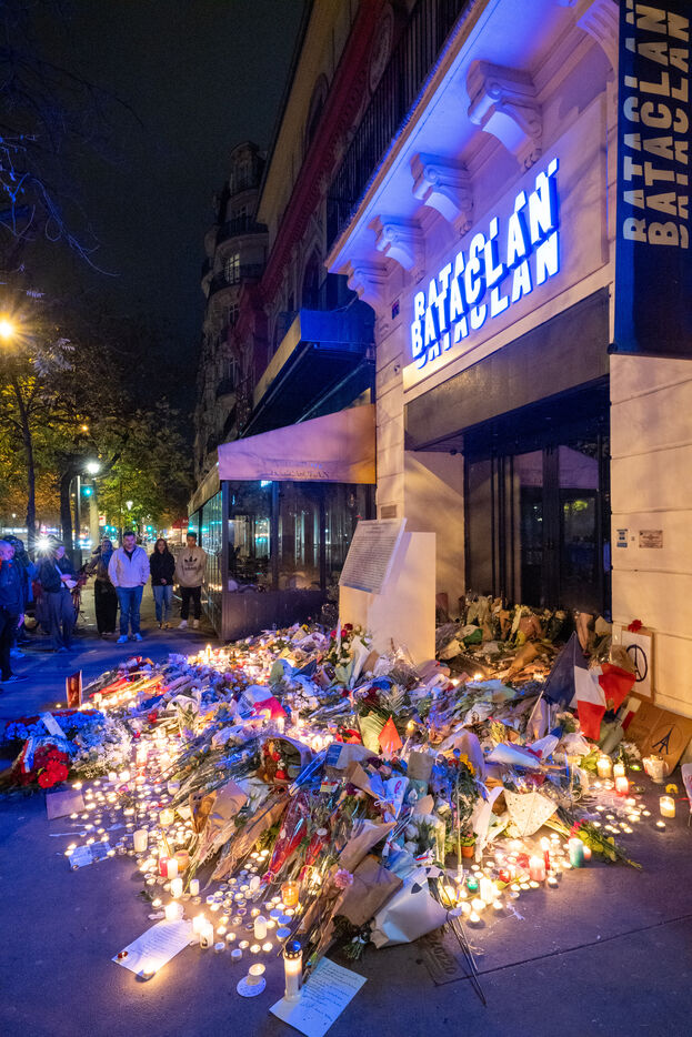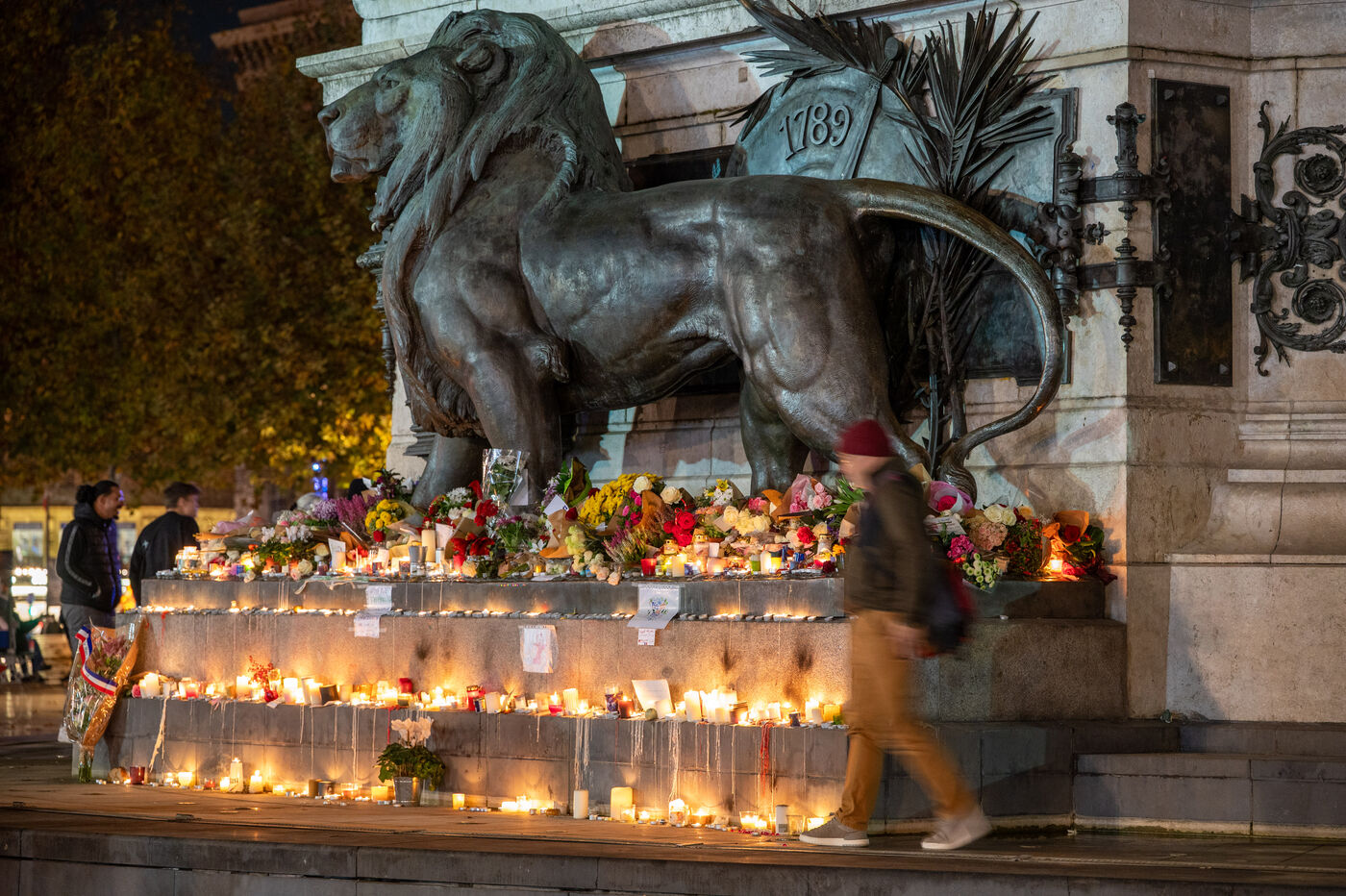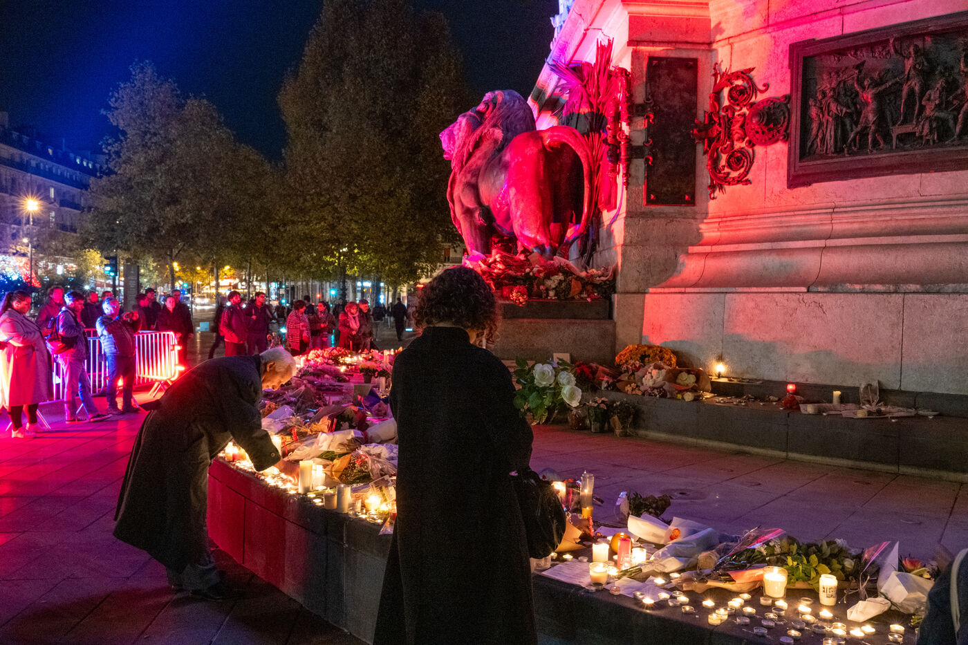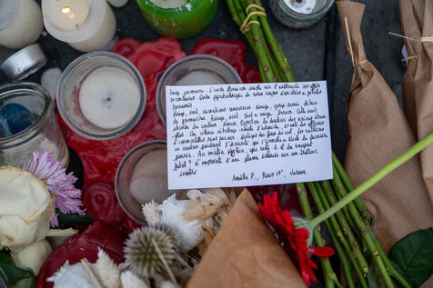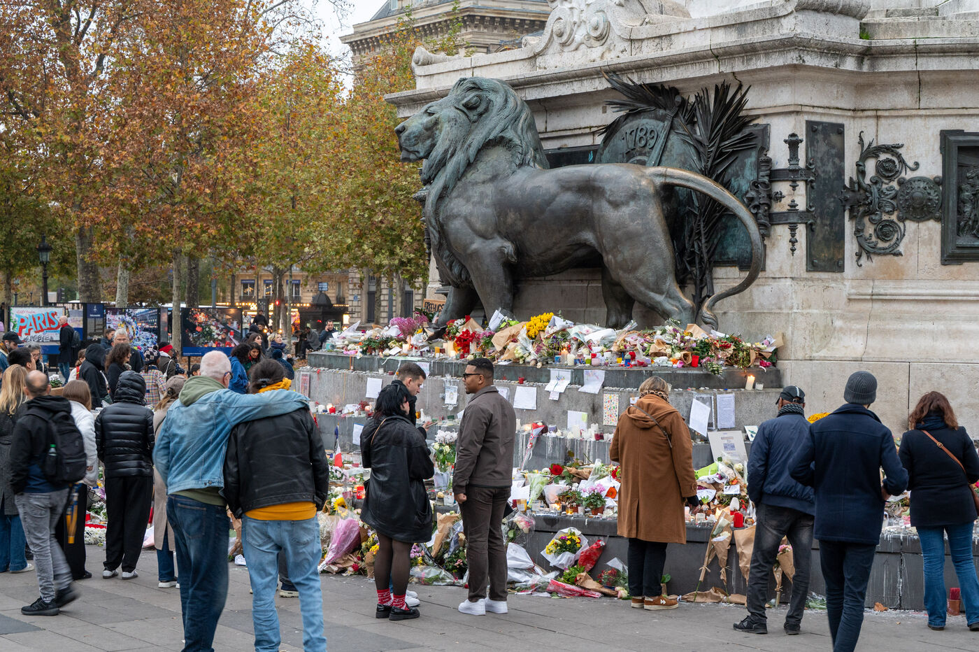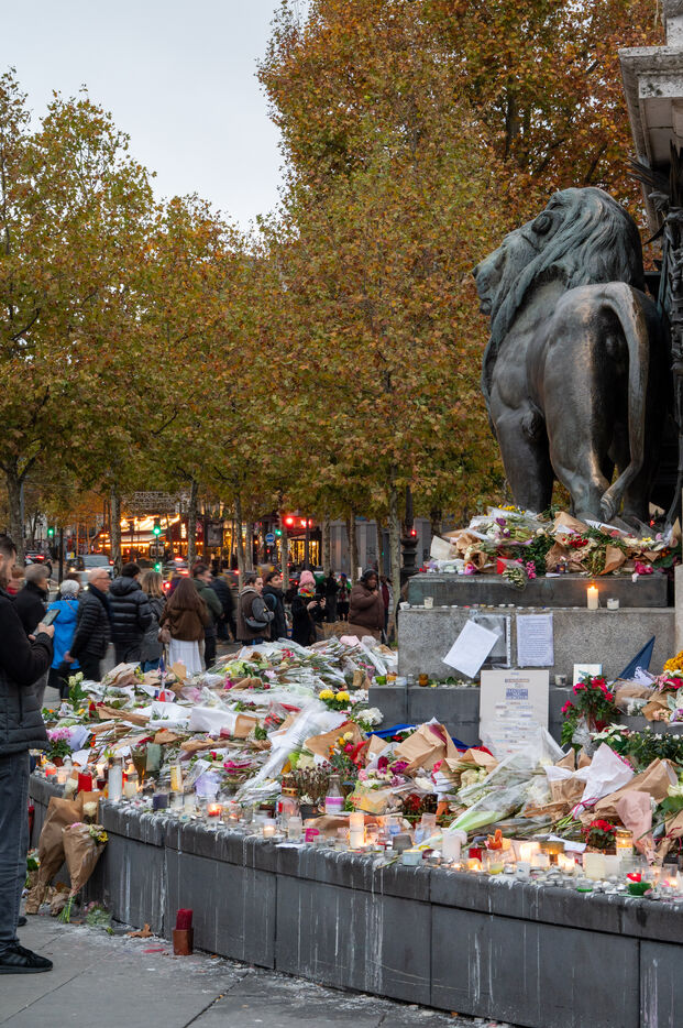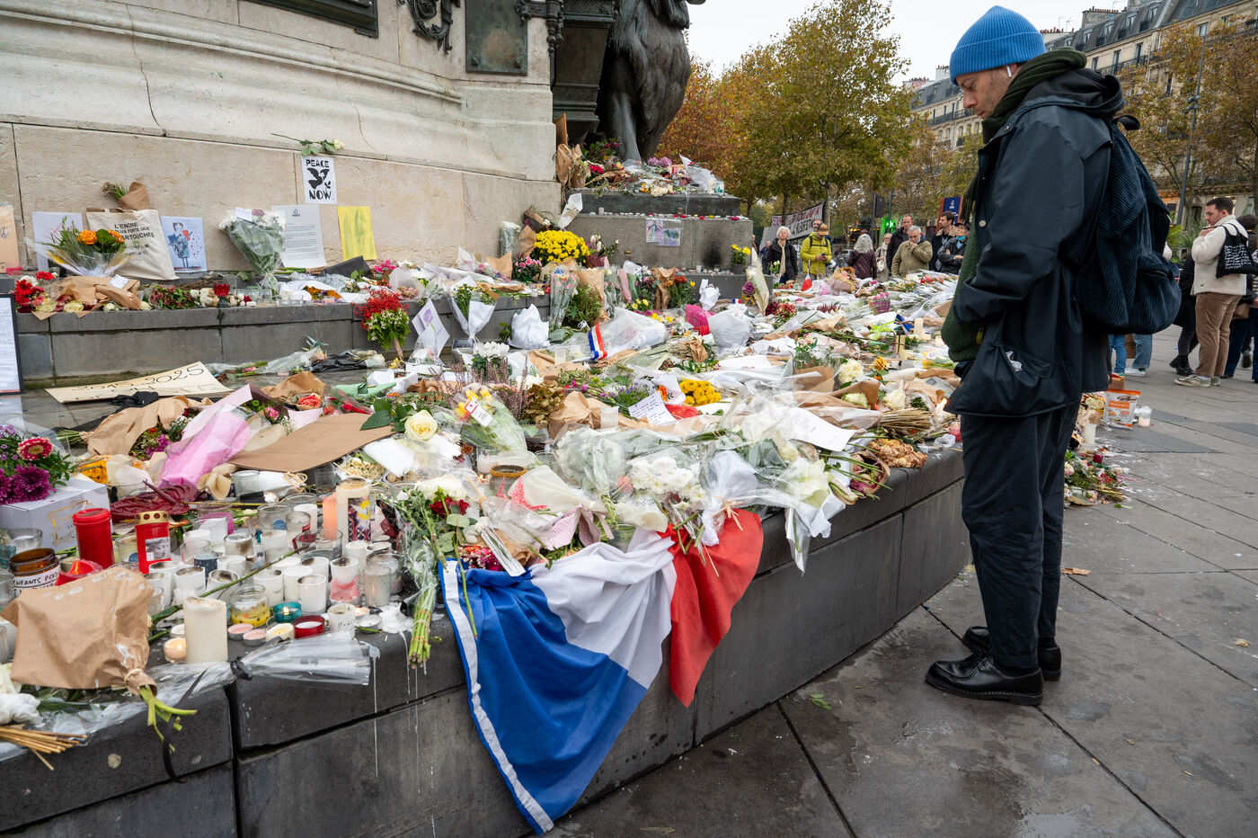 Fleurs et bougies, messages d'amour et d'amitié, commémorations spontanées et manifestations officielles se déroulent 10 ans après les attentats terroristes meurtrier de 2015 dans plusieurs lieux symboliques de la ville de Paris, dont la Place de la République, à proximité de la Mairie de Paris avec l'inauguration d'un monument pour toutes les victimes ou encore sur les différents sites touchés mortellement dans la capitale.
