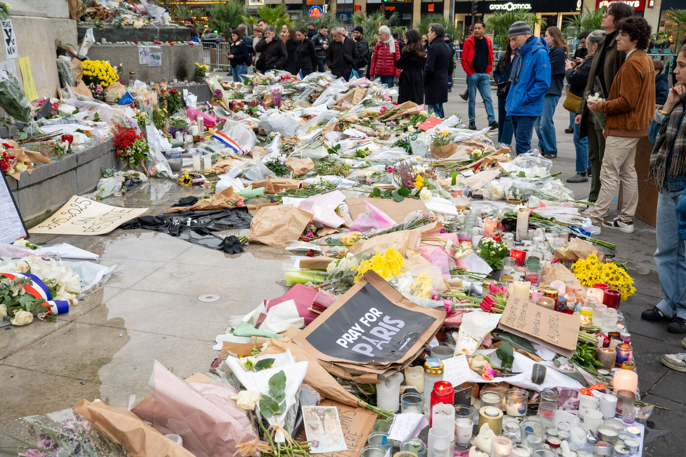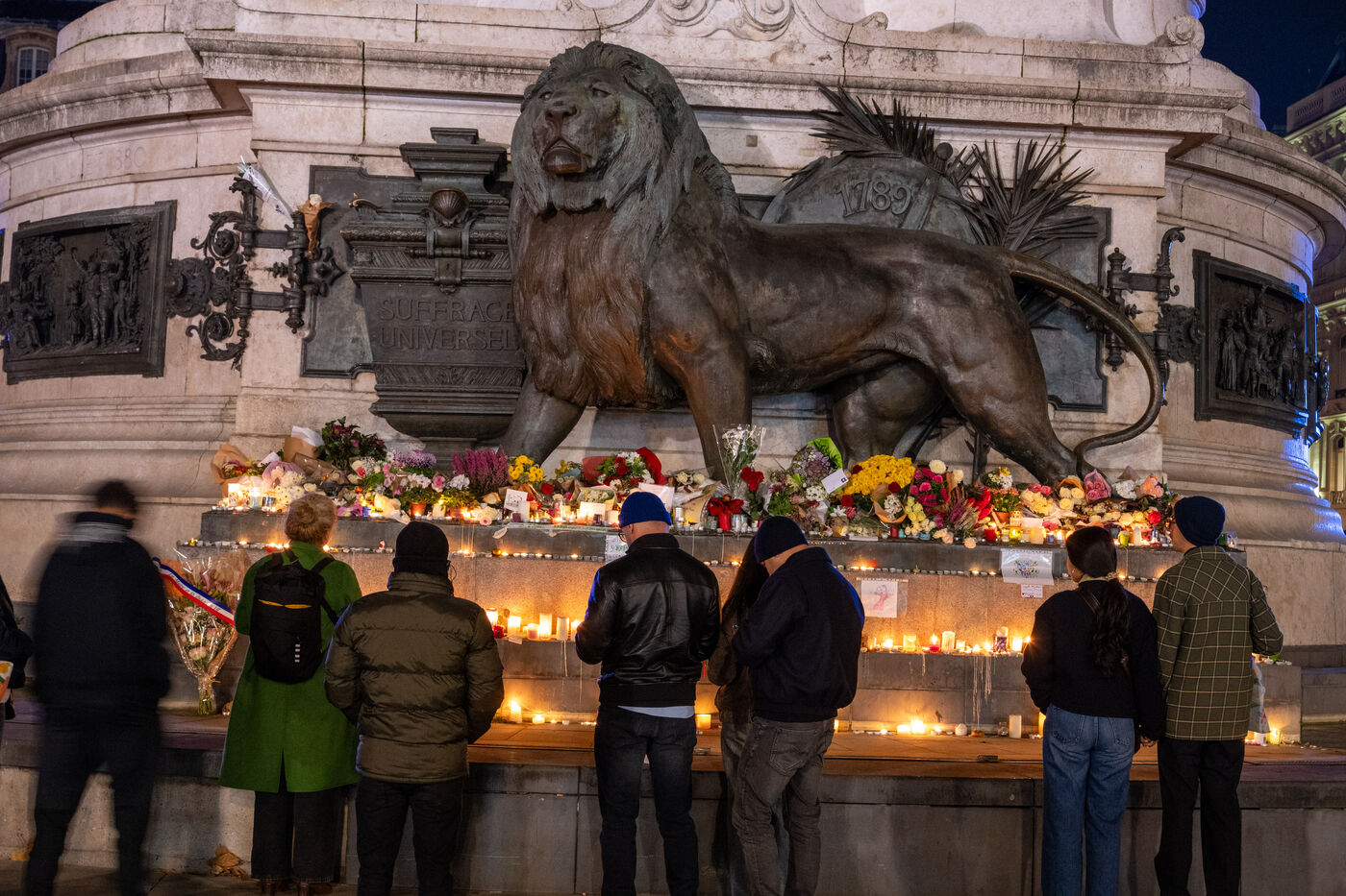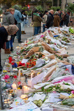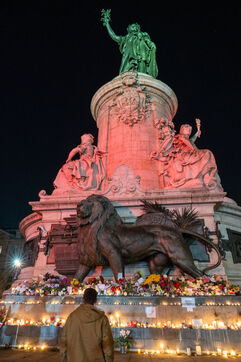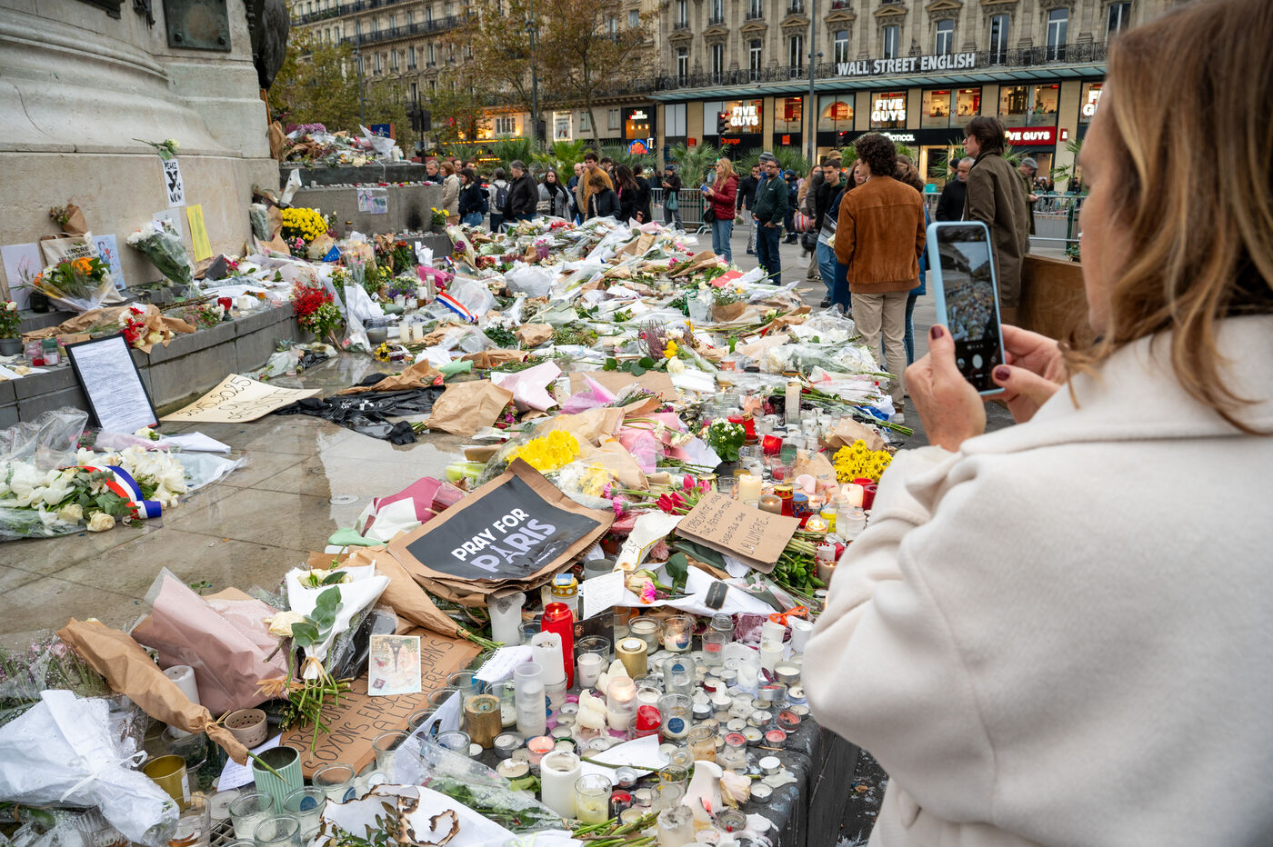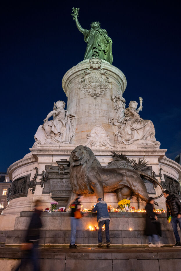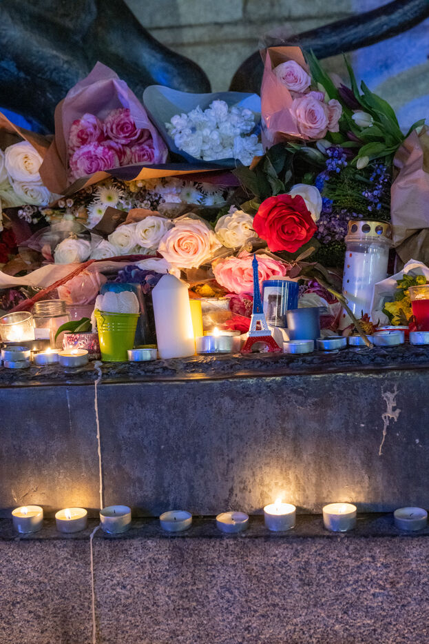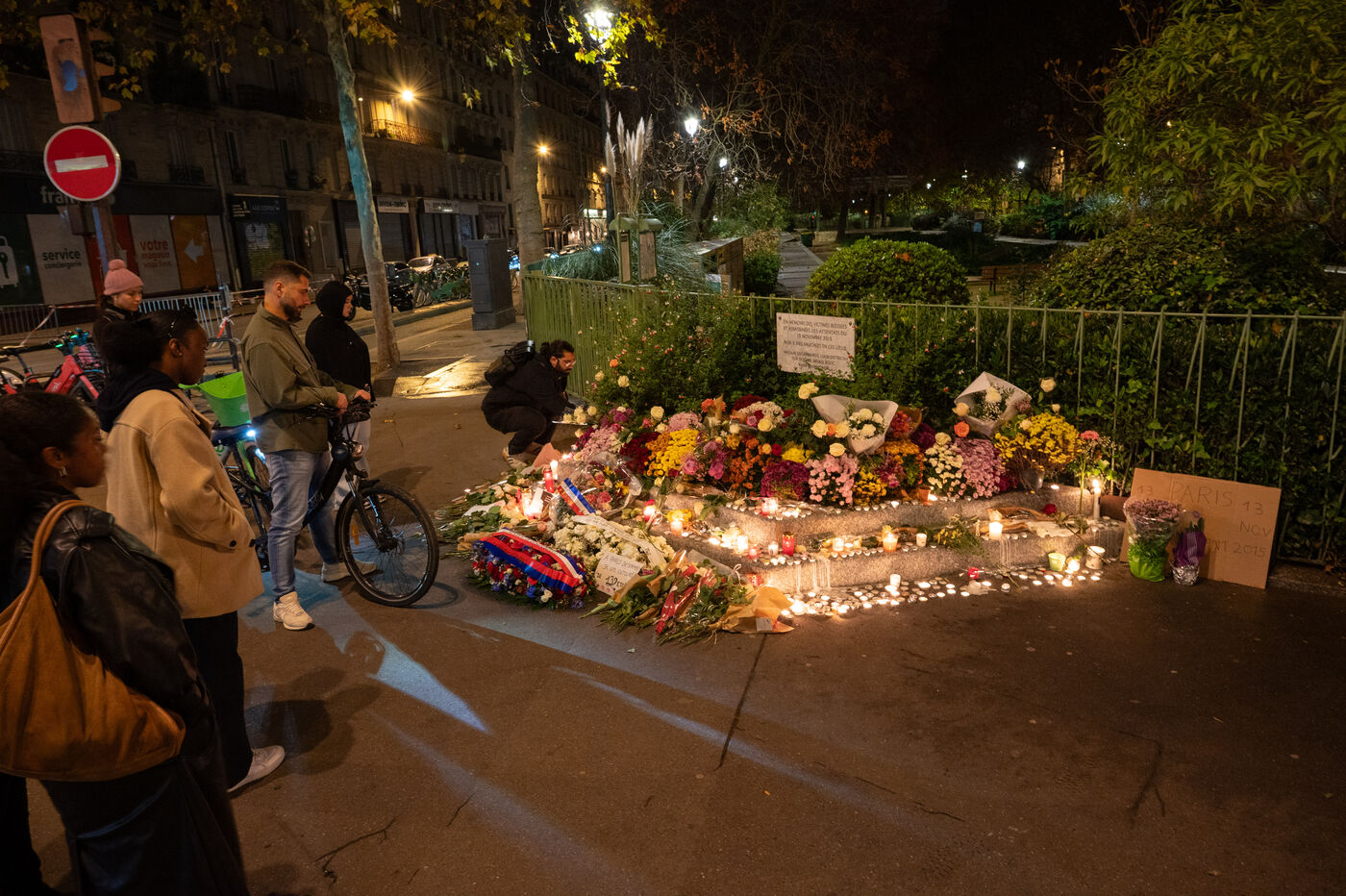 Fleurs et bougies, messages d'amour et d'amitié, commémorations spontanées et manifestations officielles se déroulent 10 ans après les attentats terroristes meurtrier de 2015 dans plusieurs lieux symboliques de la ville de Paris, dont la Place de la République, à proximité de la Mairie de Paris avec l'inauguration d'un monument pour toutes les victimes ou encore sur les différents sites touchés mortellement dans la capitale.