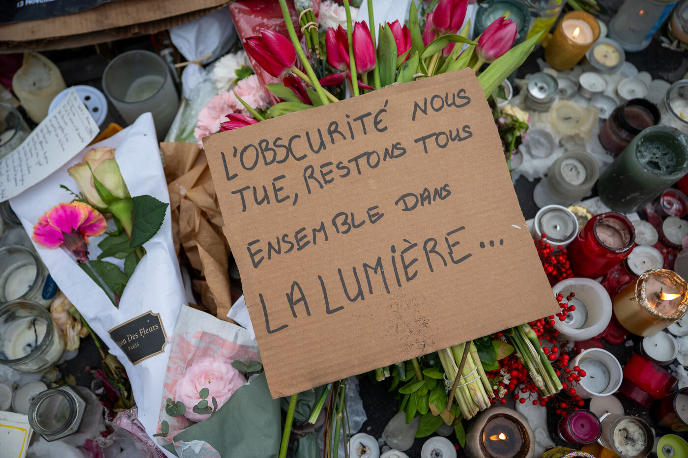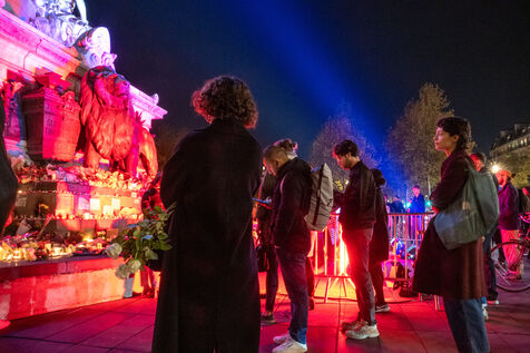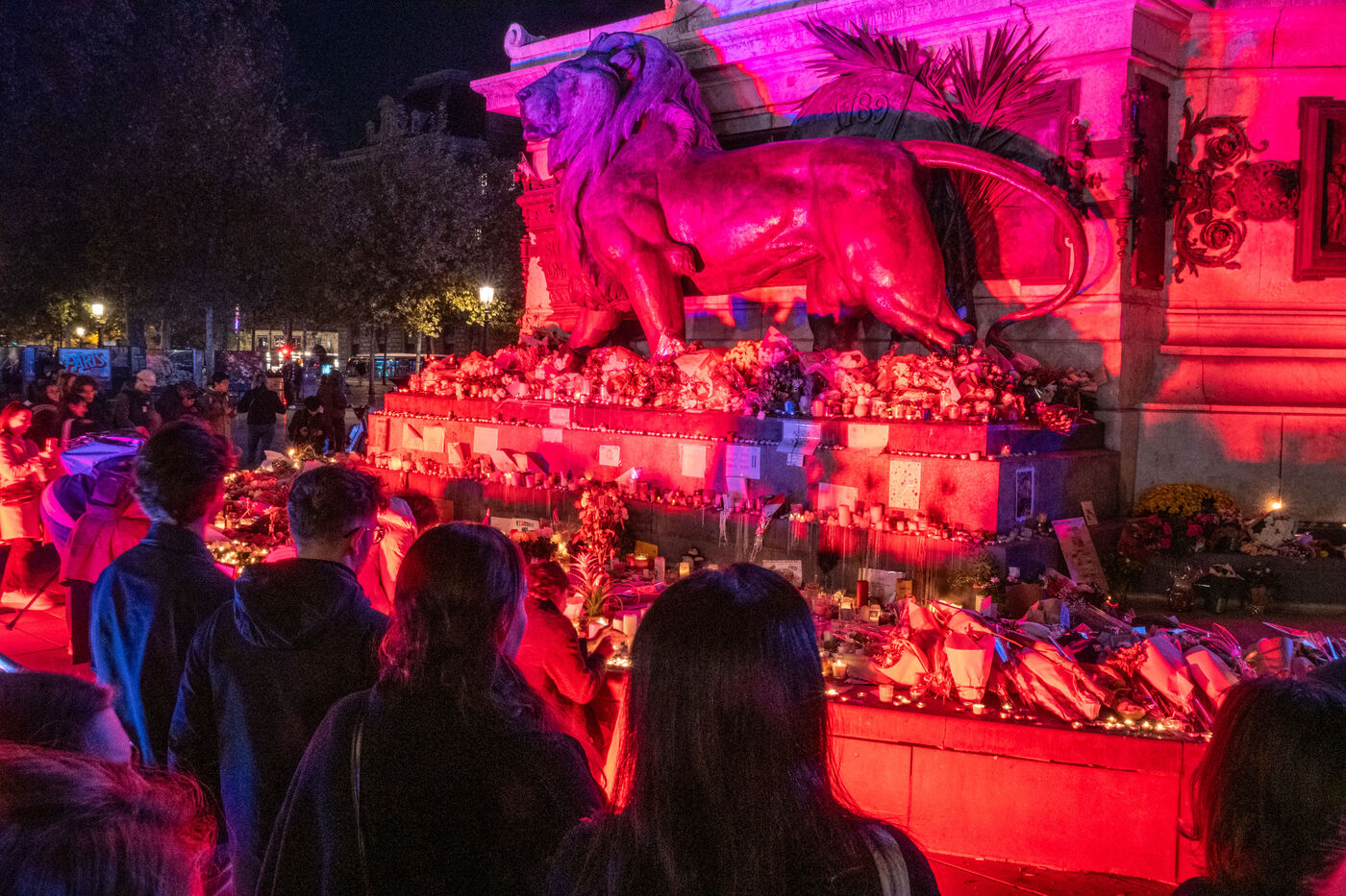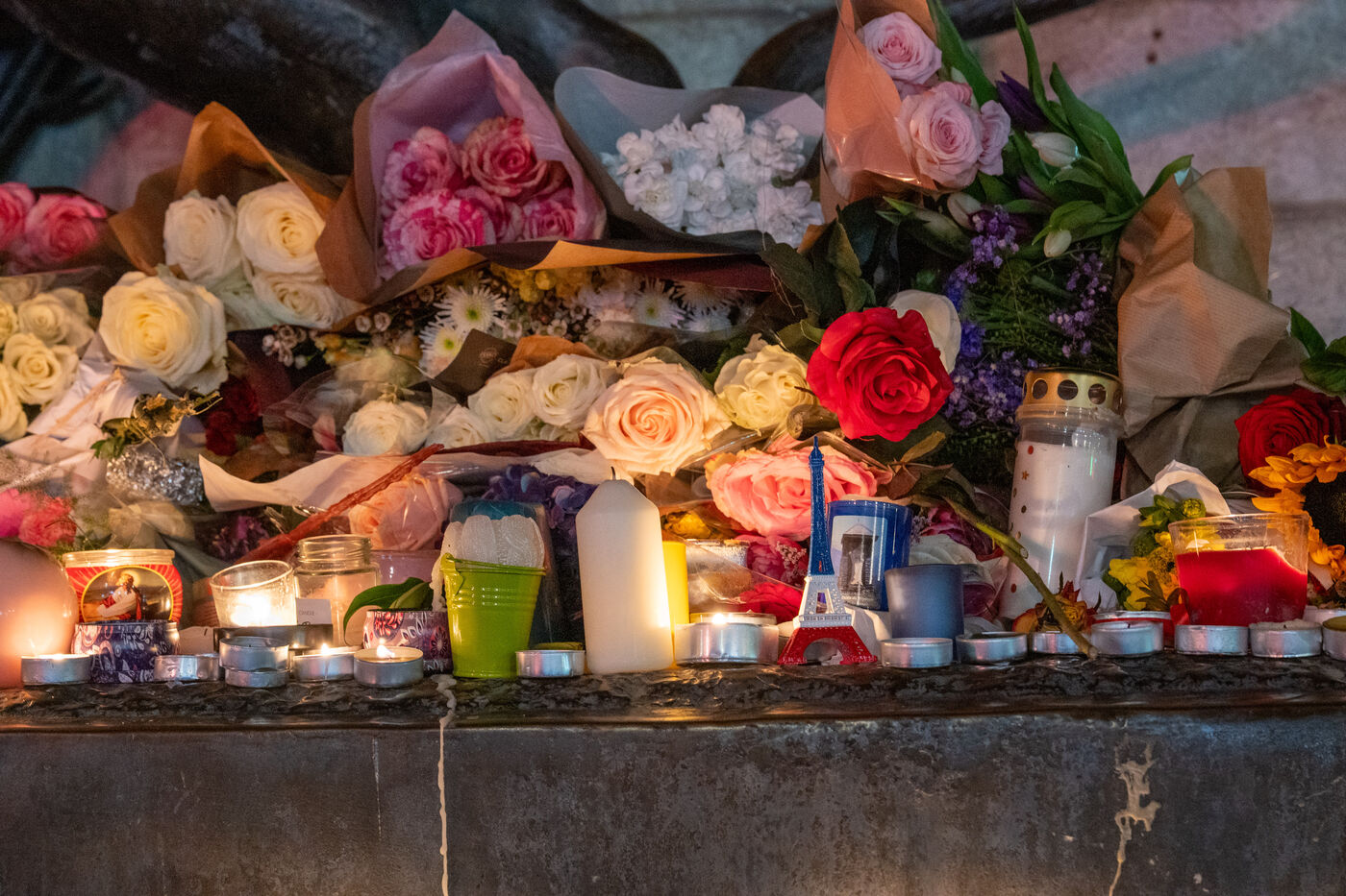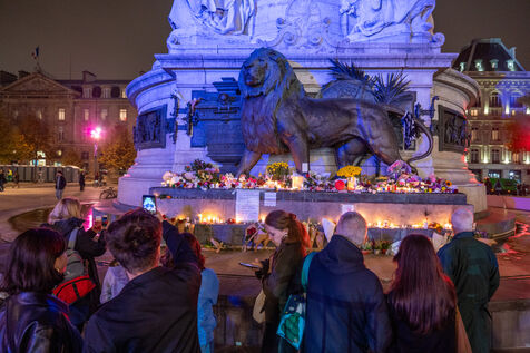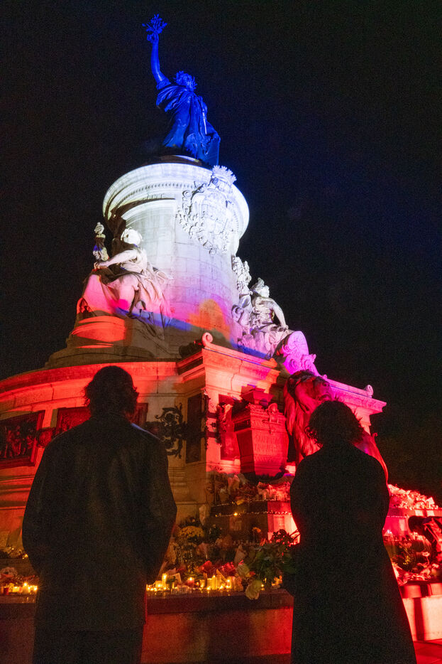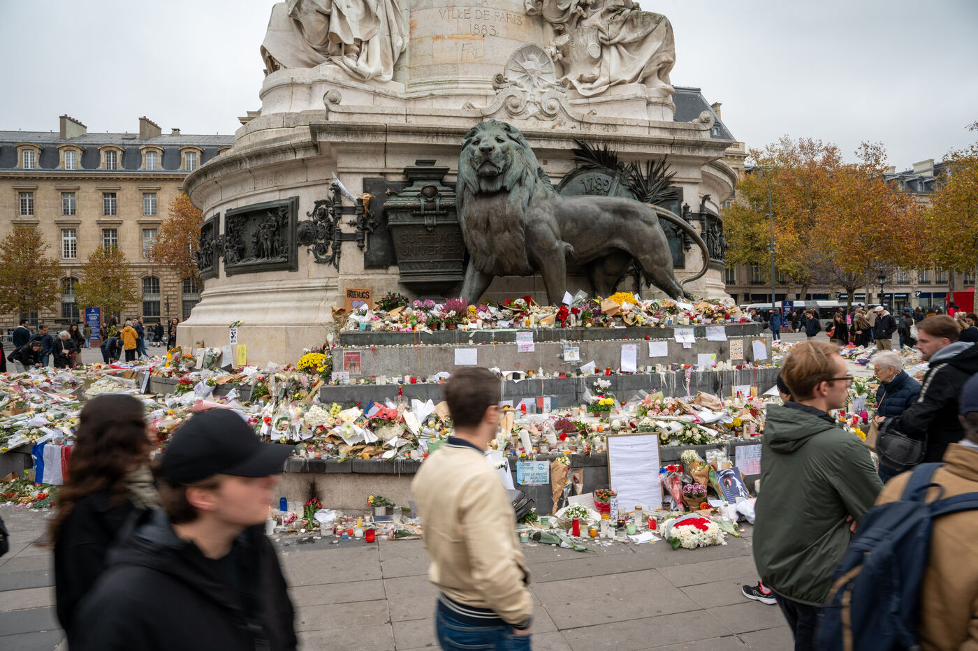Fleurs et bougies, messages d'amour et d'amitié, commémorations spontanées et manifestations officielles se déroulent 10 ans après les attentats terroristes meurtrier de 2015 dans plusieurs lieux symboliques de la ville de Paris, dont la Place de la République, à proximité de la Mairie de Paris avec l'inauguration d'un monument pour toutes les victimes ou encore sur les différents sites touchés mortellement dans la capitale.