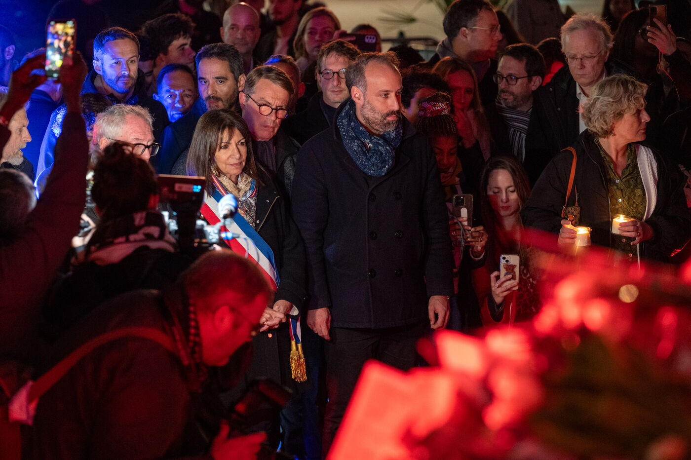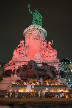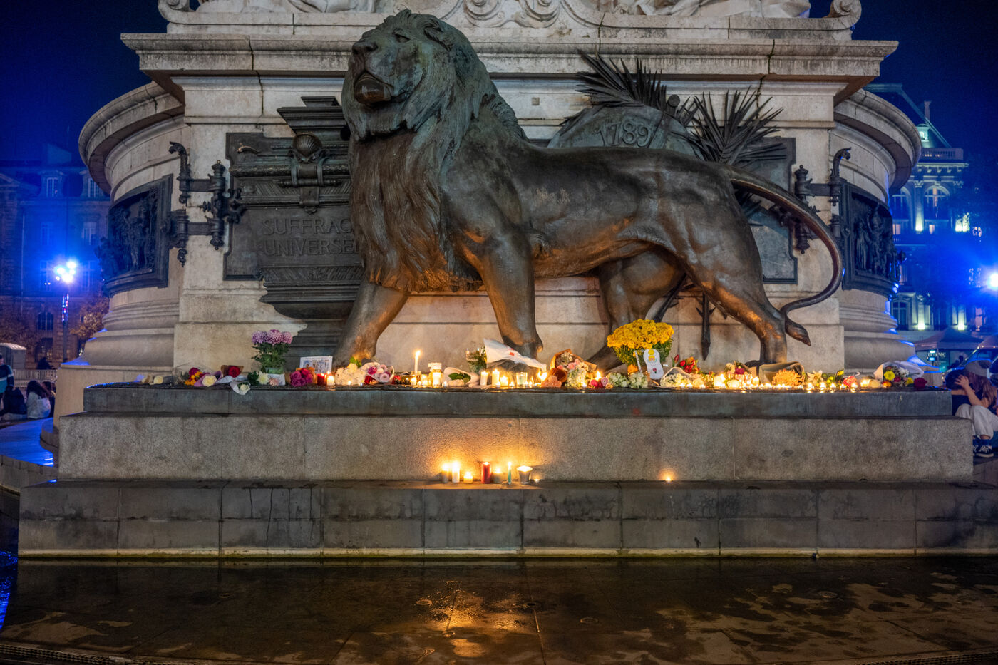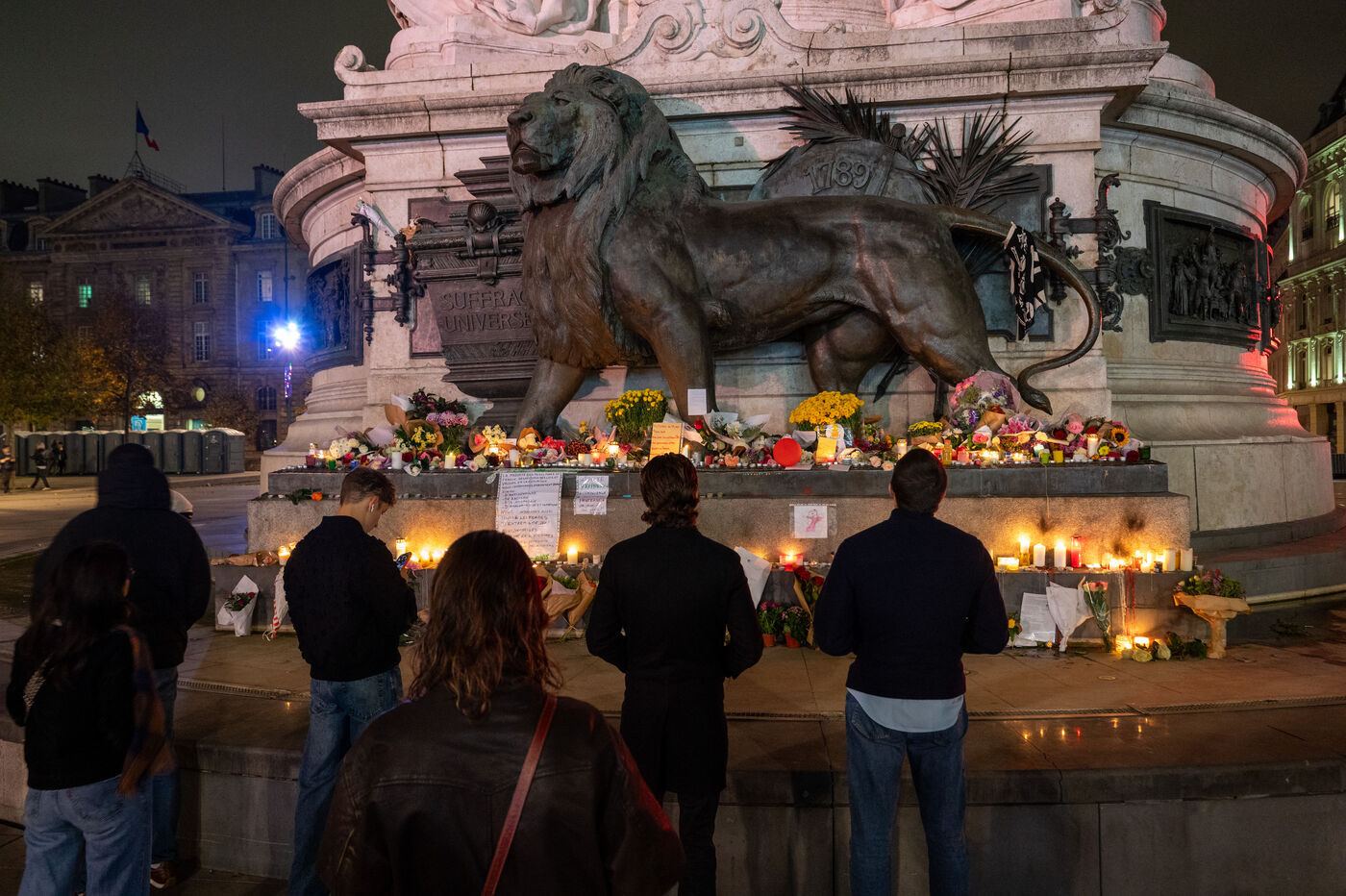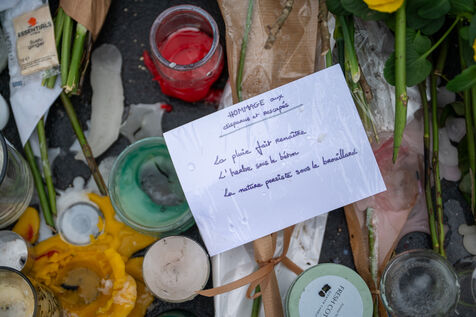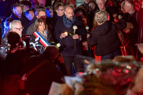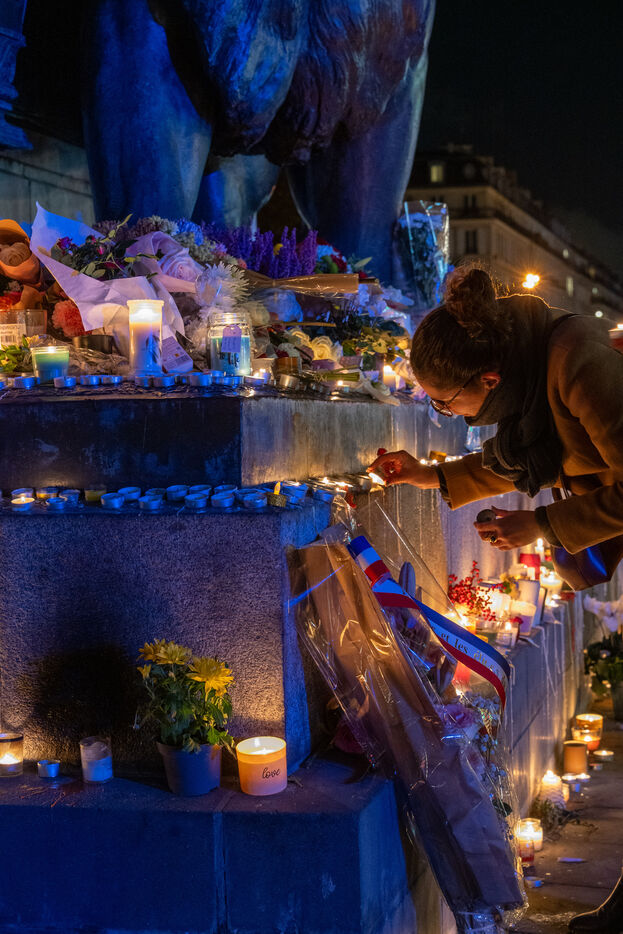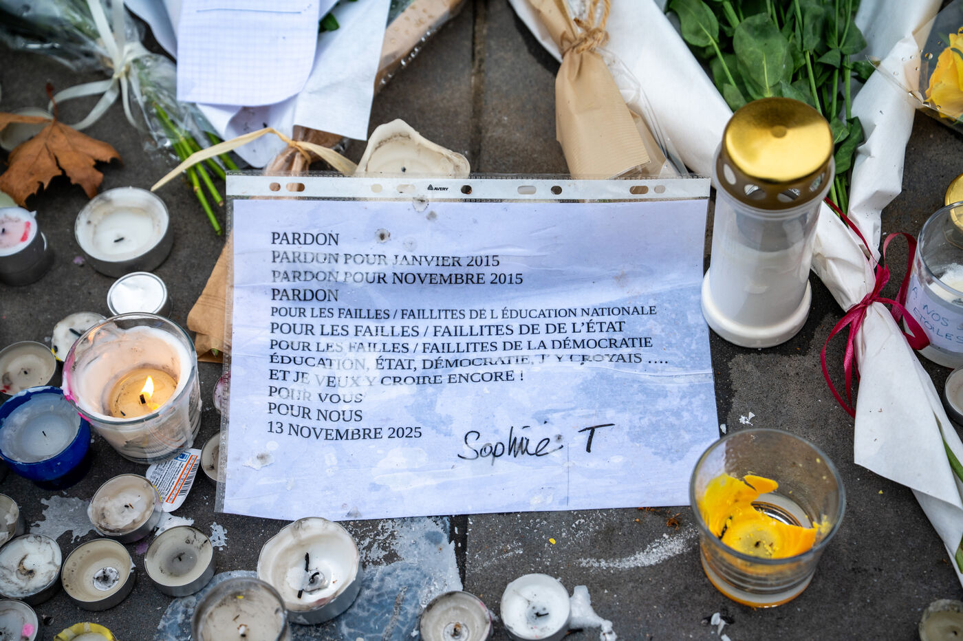 Fleurs et bougies, messages d'amour et d'amitié, commémorations spontanées et manifestations officielles se déroulent 10 ans après les attentats terroristes meurtrier de 2015 dans plusieurs lieux symboliques de la ville de Paris, dont la Place de la République, à proximité de la Mairie de Paris avec l'inauguration d'un monument pour toutes les victimes ou encore sur les différents sites touchés mortellement dans la capitale.