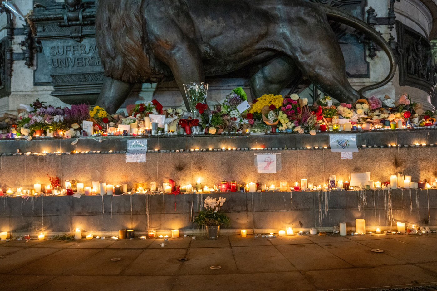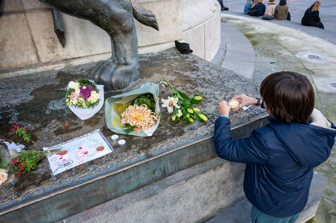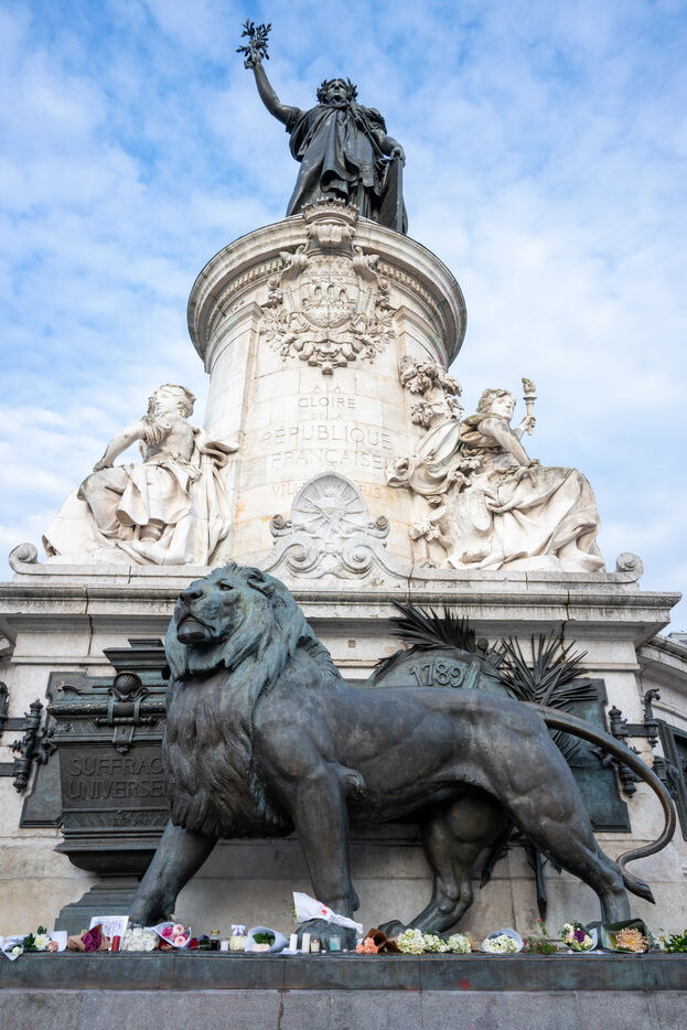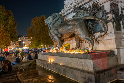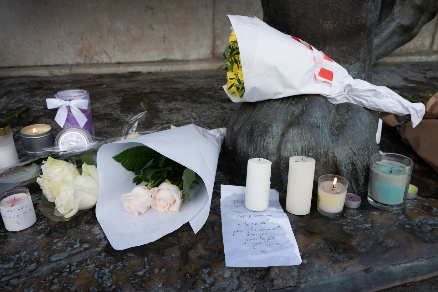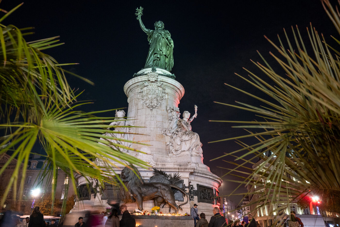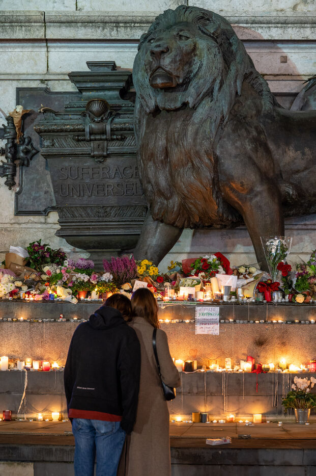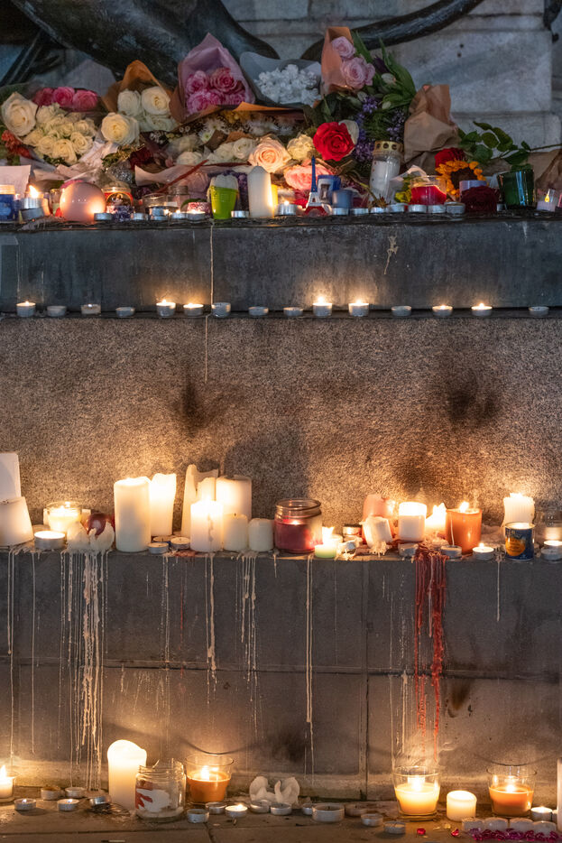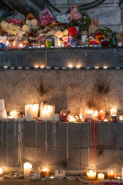 Fleurs et bougies, messages d'amour et d'amitié, commémorations spontanées et manifestations officielles se déroulent 10 ans après les attentats terroristes meurtrier de 2015 dans plusieurs lieux symboliques de la ville de Paris, dont la Place de la République, à proximité de la Mairie de Paris avec l'inauguration d'un monument pour toutes les victimes ou encore sur les différents sites touchés mortellement dans la capitale.