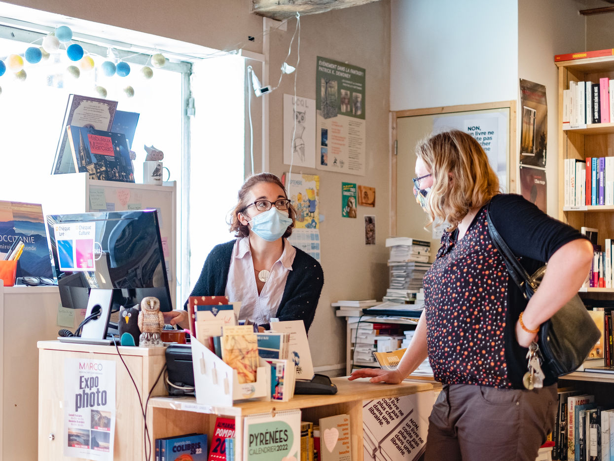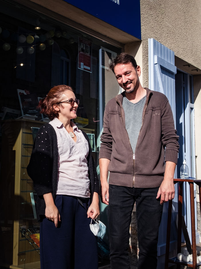 Gaelle Paty tells about her brother in her bookshop in Marciac