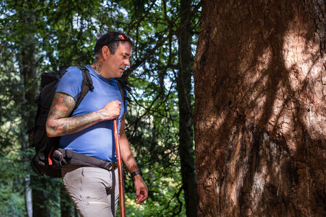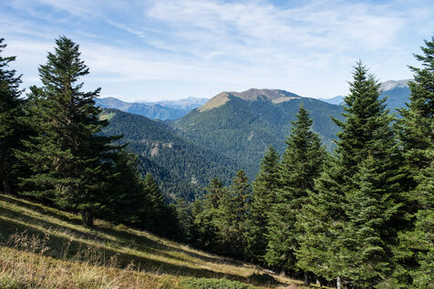 Encountering a bear in the Pyrenees is virtually mission impossible! So to find out more about this very discreet animal, I followed an expert, Florent Antras, a former shepherd who is now a mountain guide in Ariège and a mediator between the bear and humans. Passionate about this mammal, he has studied its behaviour and collected thousands of objects about it: books, photos, pins, etc. And he knows the terrain where this wild animal lives by heart. Most of the bears in the Pyrenees can be found in Ariège. "This year, I saw the bear 25 times. Sometimes he was 10 metres away. We live in the same territory, he's like a neighbour", Florent smiles as he leads me into a forest in search of tracks: hair, footprints, droppings...