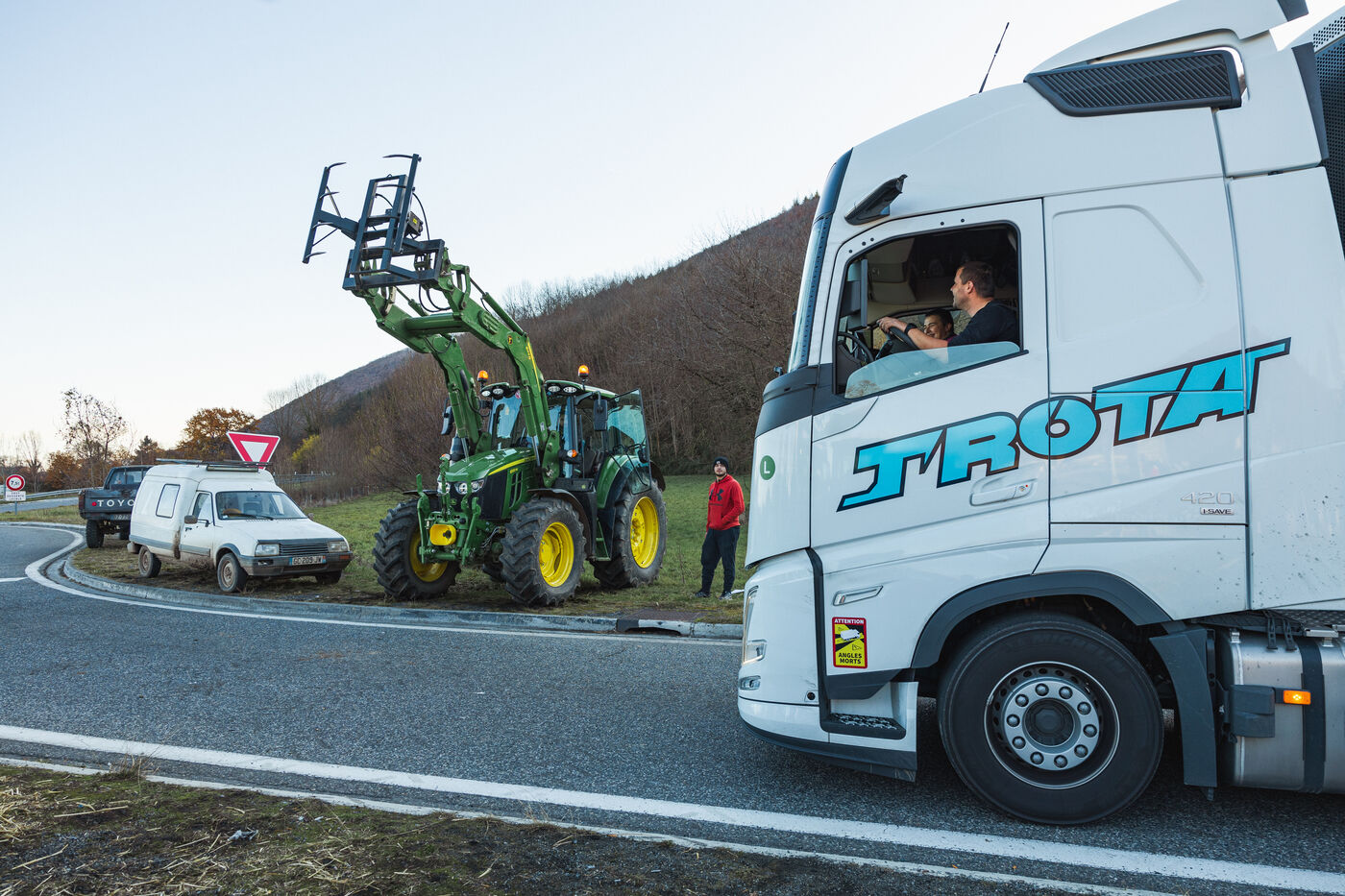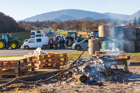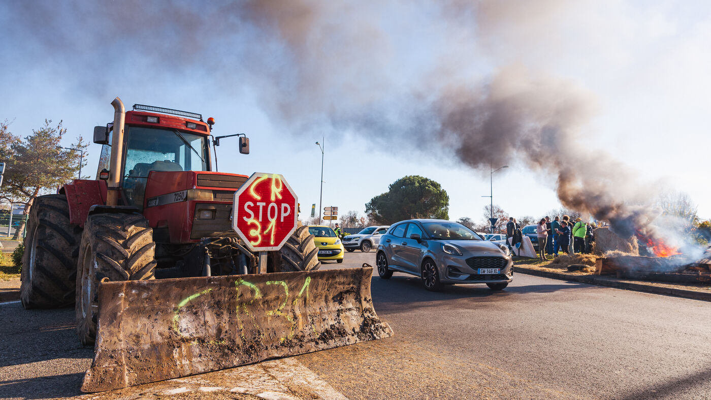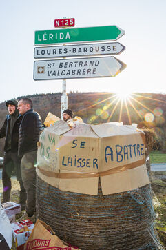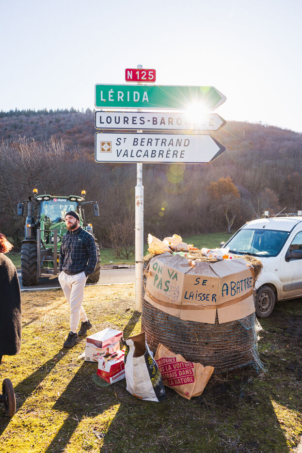 Des agriculteurs manifestent sur les ronds-points du Comminges pour protester contre les décisions d'abattage des troupeaux de bovins dans un contexte de propagation de la dermatose nodulaire contagieuse (DNC). Dans le sud-ouest de la France, le 13 décembre 2025.