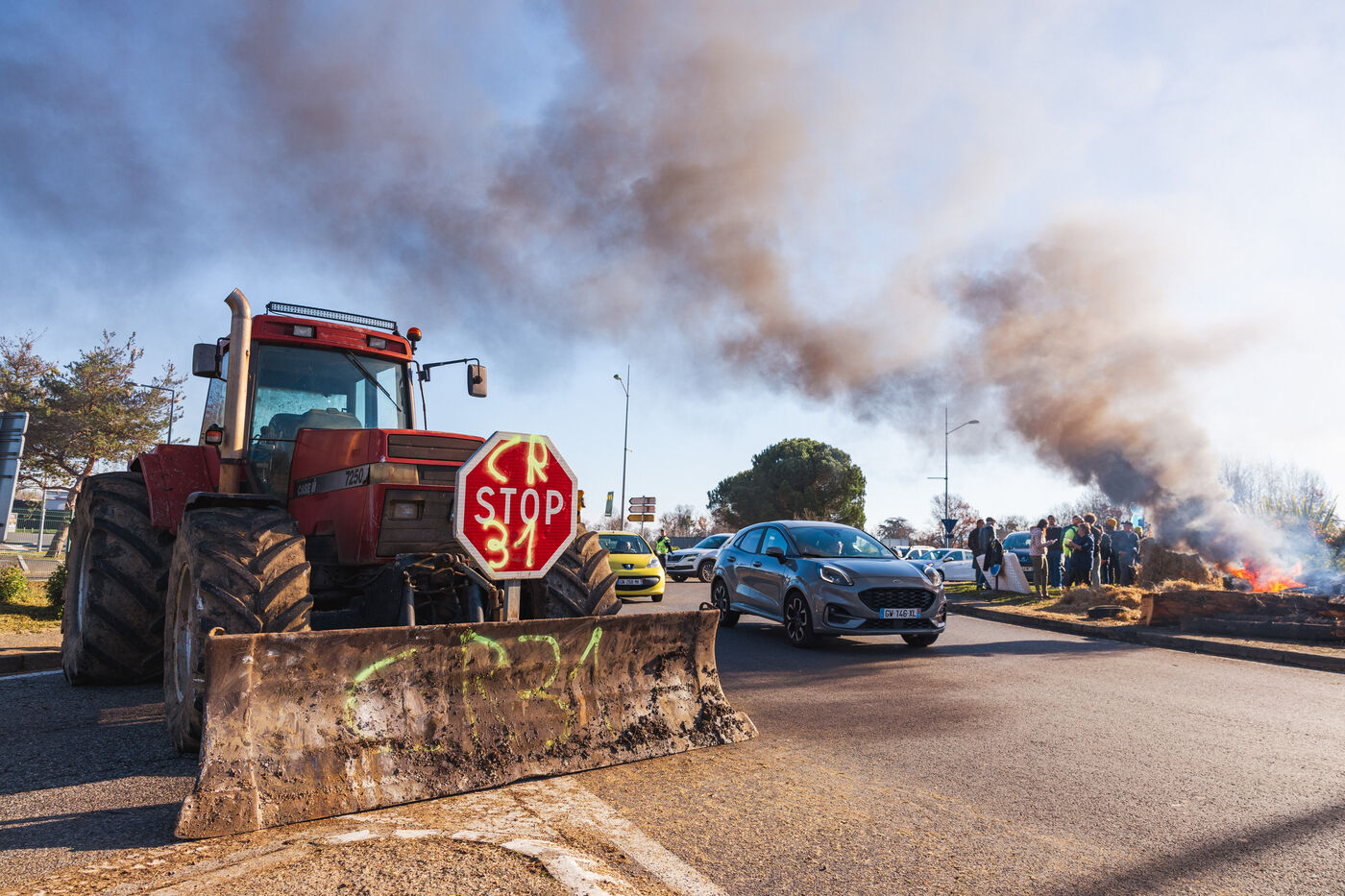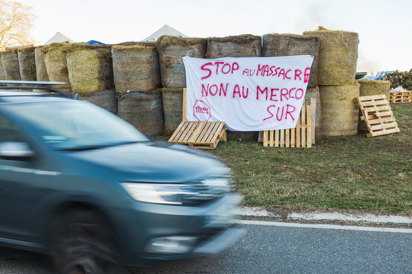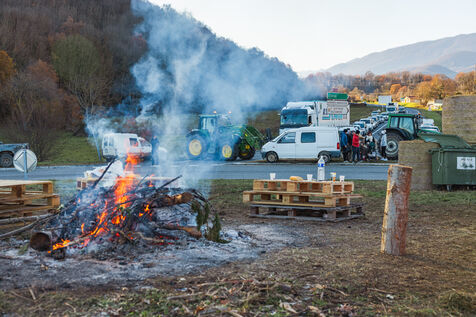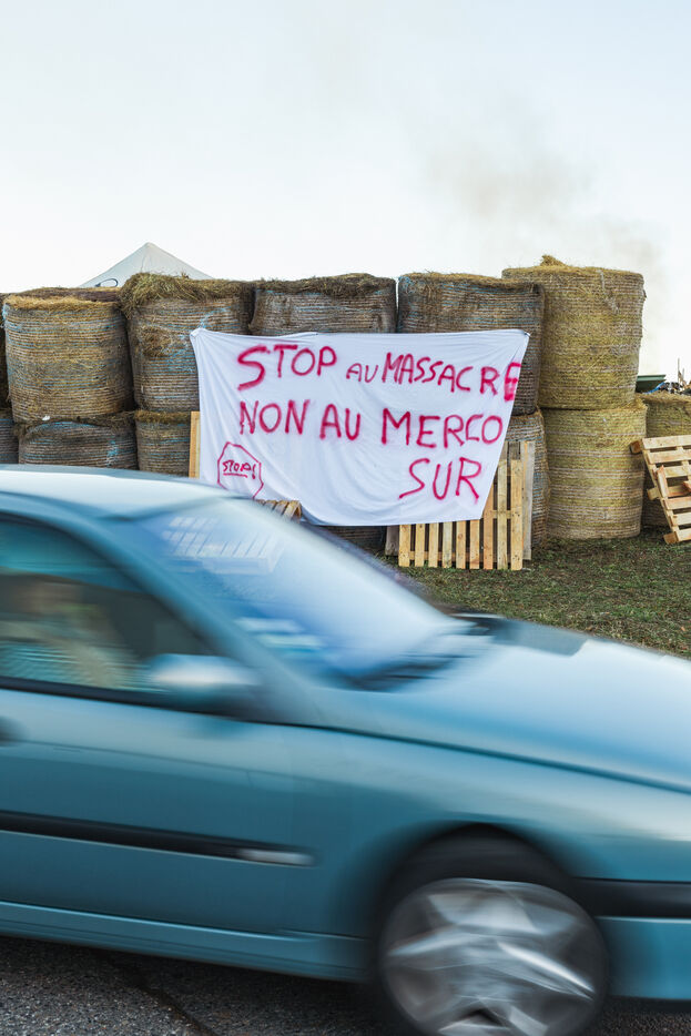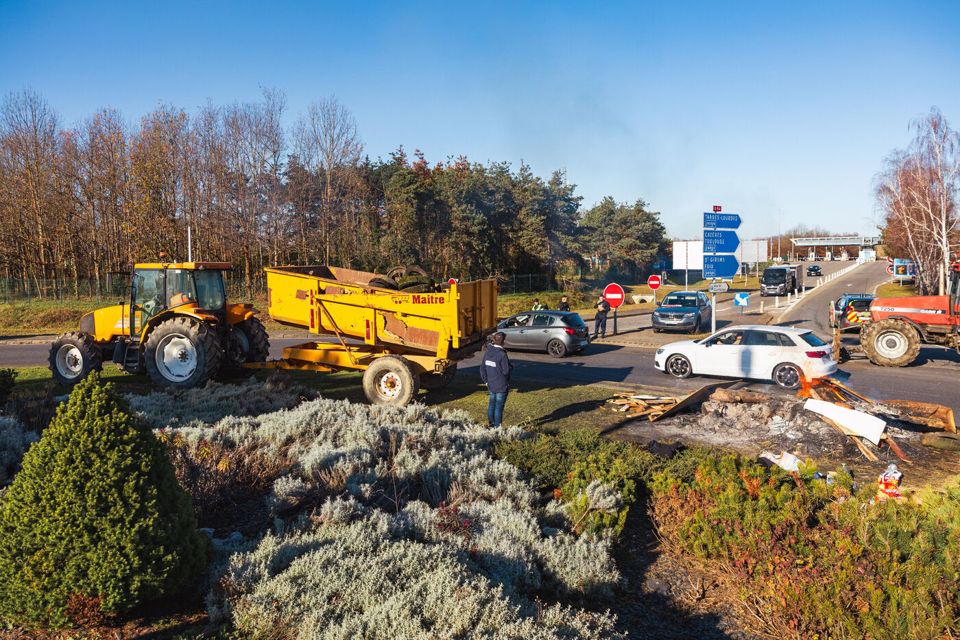 Farmers protest at roundabouts in Comminges against decisions to cull cattle herds amid the spread of contagious nodular dermatitis (CND). In southwestern France, December 13, 2025.
